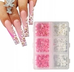 Kasetka ozdoby do paznokci perełki perły białe kawior srebrny mix rozmiarów