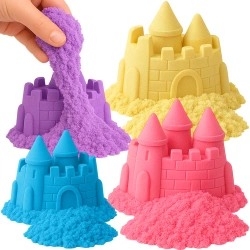Zestaw Piasek Kinetyczny 4 kg różowy, żółty, niebieski, fioletowy – Super Plastyczna Piaskolina dla Dzieci