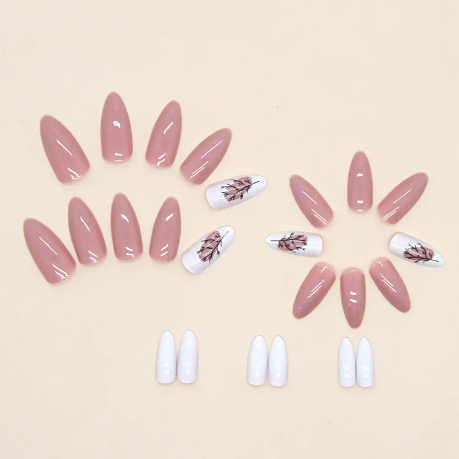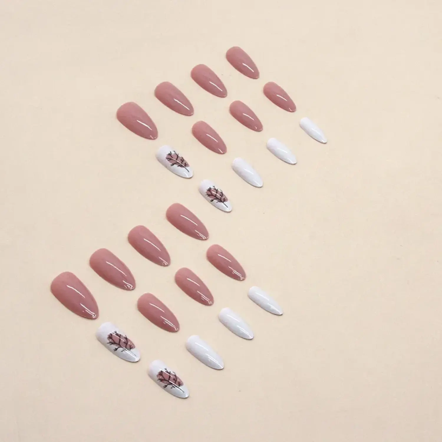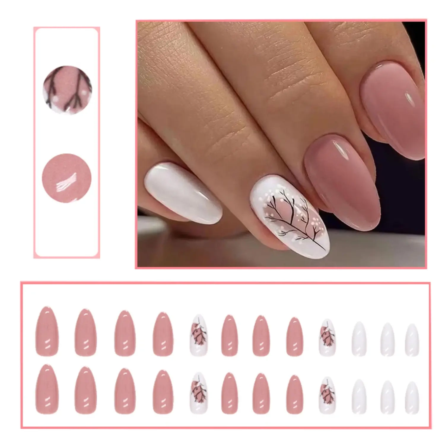 PAZNOKCIE SZTUCZNE TIPSY ALMOND NUDE GAŁĄZKI WZORY 24SZT