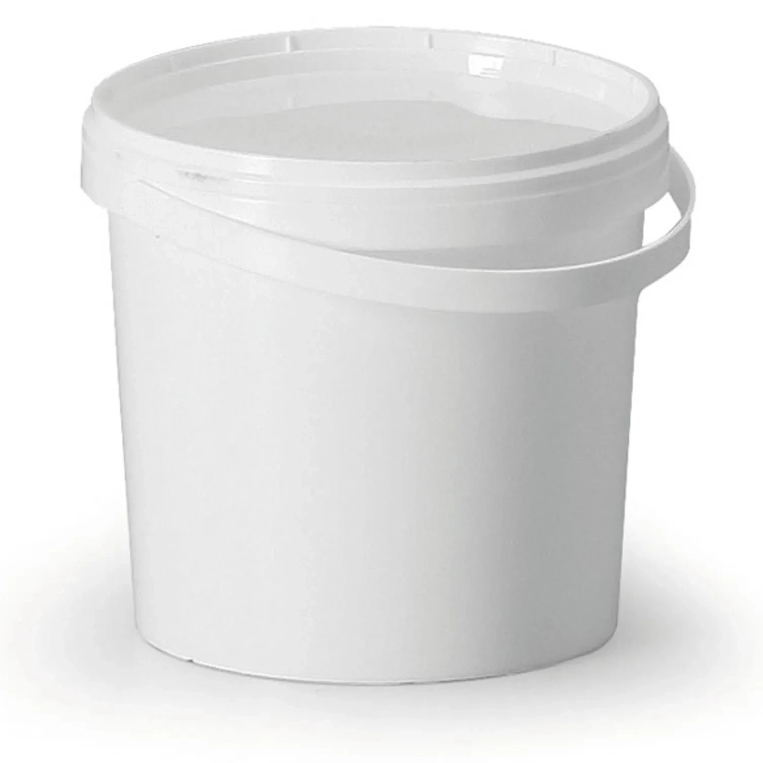 Atestowane szczelne wiaderko z pokrywką o pojemności 1,2 L w kolorze białym.