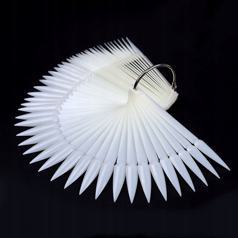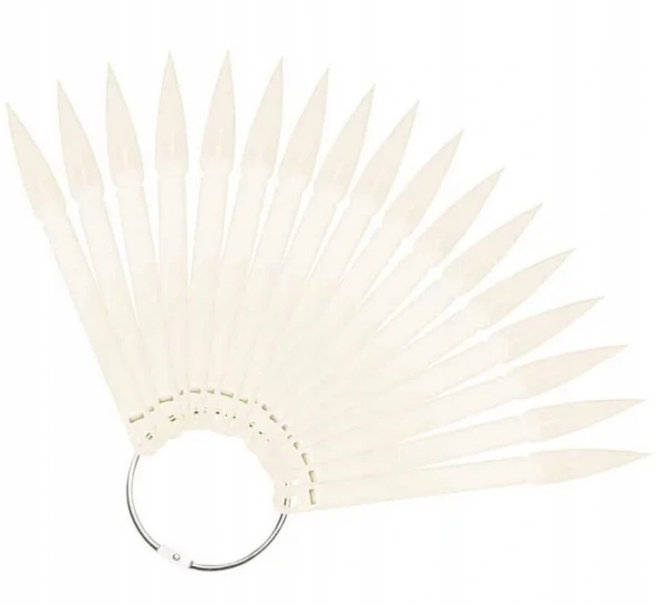 Mleczny wachlarz to praktyczne narzędzie idealne do prezentacji kolorów lakierów. Wzornik składa się z 50 przezroczystych tipsów umieszczonych na metalowym kole, dzięki czemu można swobodnie dołożyć pomalowany paznokieć do swojego i sprawdzić czy kolor będzie odpowiedni. Każda próbka ma kształt szpica, co pozwala na precyzyjną aplikację lakieru i dokładne odwzorowanie koloru. Wzornik jest niezbędnym elementem wyposażenia każdego salonu kosmetycznego, a także doskonałym narzędziem dla osób, które chcą uporządkować swoją kolekcję lakierów w domu. To bardzo czytelna, wygodna oraz estetyczna paleta do malowania lakierami, hybrydami, żelami.