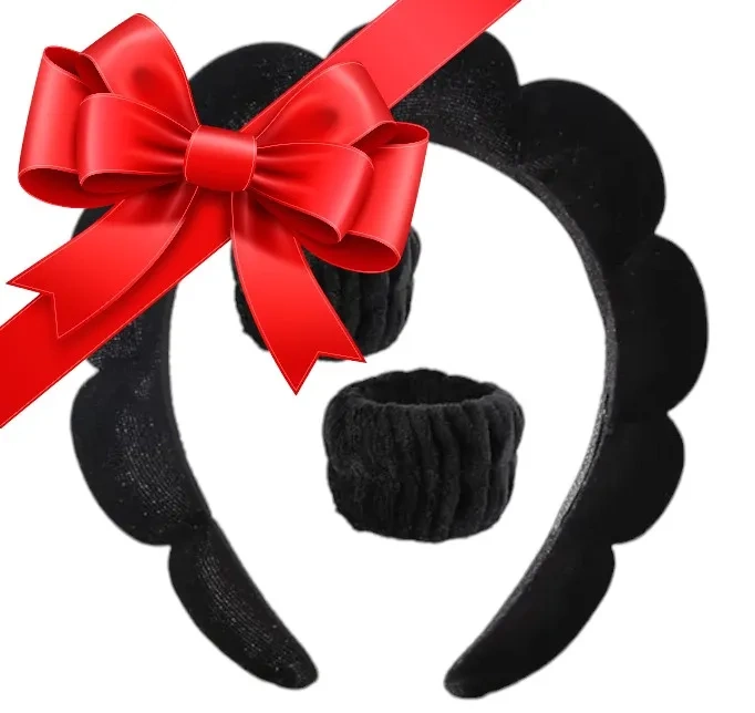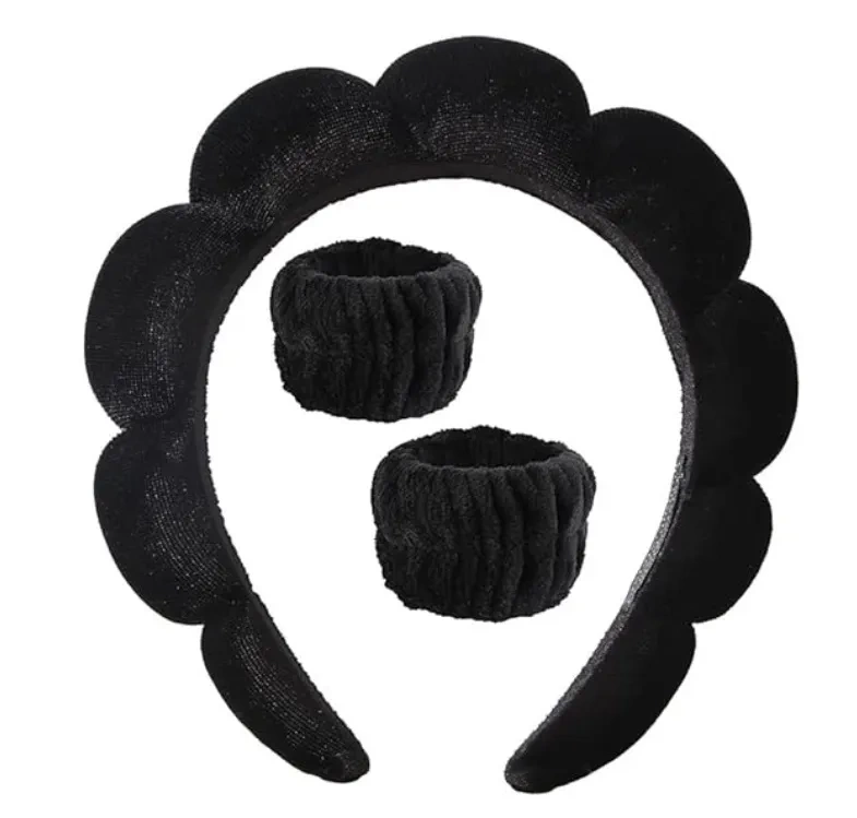 Kosmetyczna opaska na głowę i nadgarstki do makijażu czarna