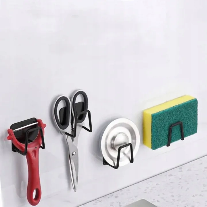 Wygodny - do trzymania gąbki lub podkładki do szorowania i utrzymywania blatów w czystości, bez bałaganu wokół zlewu