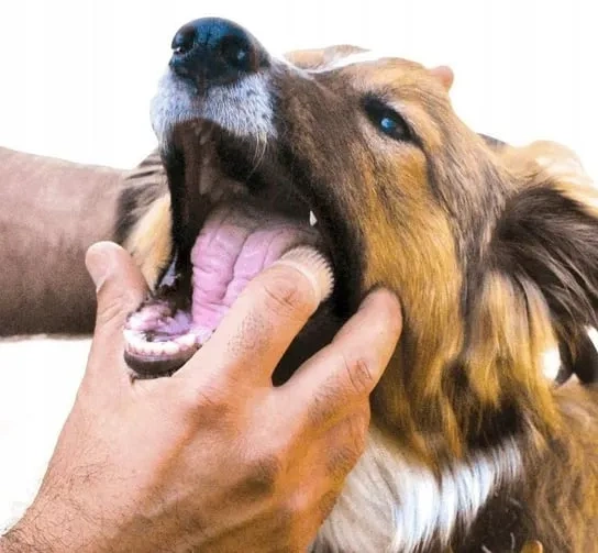 Silikonowa szczoteczka do mycia zębów dla zwierząt.