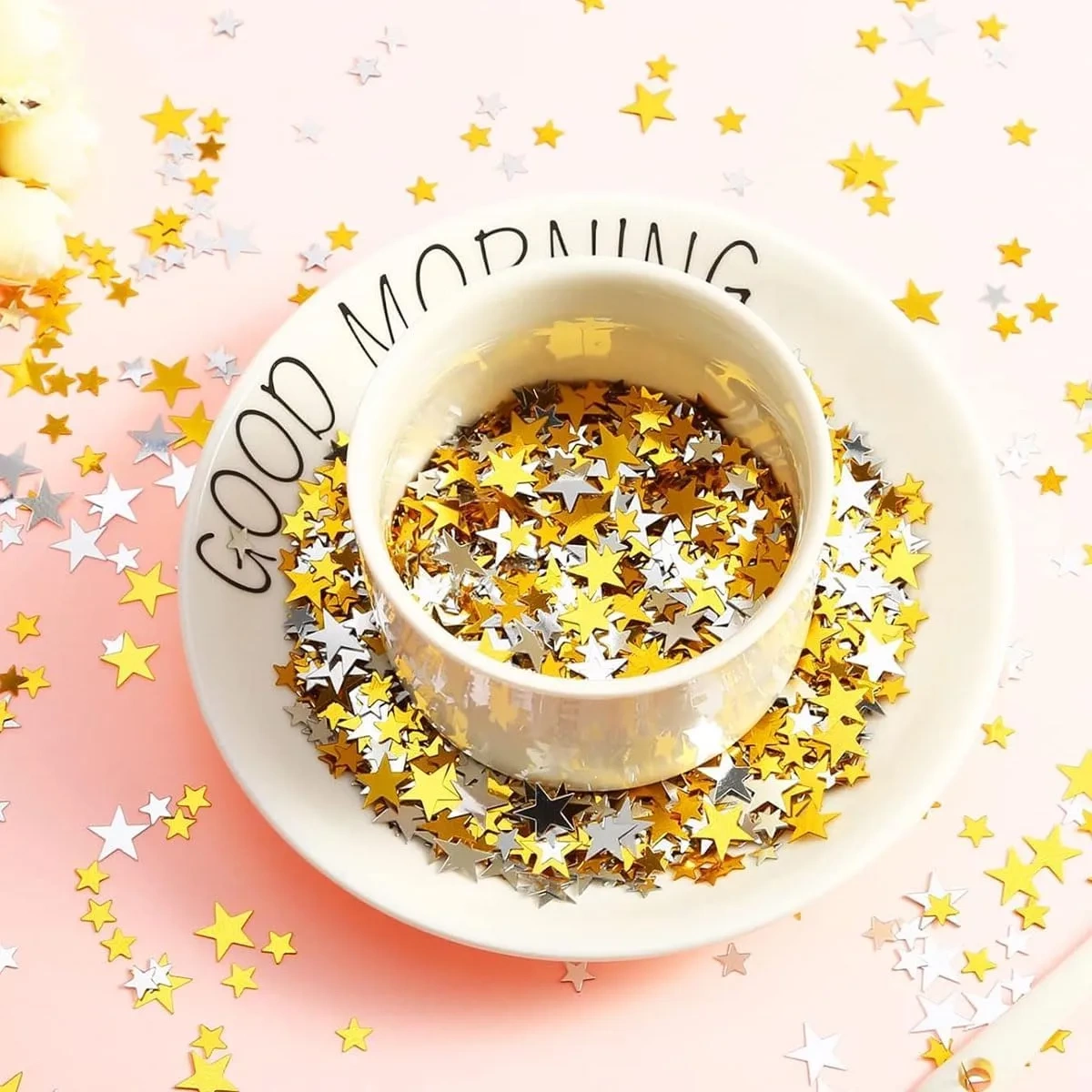Zestaw dekoracyjnych cekinów w kształcie gwiazdek, idealnych do zdobienia paznokci, szczególnie w okresie świątecznym. Cekiny występują w różnych kolorach złotym oraz srebrnym, co dodaje elegancji i świątecznego blasku. Można je stosować zarówno do manicure, jak i pedicure, aby dodać odrobinę luksusu i wyjątkowości. Produkt doskonale sprawdzi się jako ozdoba na specjalne okazje lub do codziennych stylizacji dla osób lubiących efektowne zdobienia. Bardzo szybkie i proste w aplikacji konfetti do ozdobienia paznokci. Elastyczne, nie kruszące się, jak ich tańsze zamienniki, cienkie ozdoby, dzięki którym stworzymy szybko i łatwo delikatne zdobienie bądź opalizujący wzór na jednym lub kilku paznokciach. Cekiny idealnie nadadzą się również do stworzenia własnych dekoracji, nie tylko do tworzenia wyjątkowych paznokci. W łatwy, prosty i przede wszystkim w najtańszy sposób można nimi przyozdobić np: kule, wianki styropianowe, jajka, połączyć razem z tasiemkami, sizalem i organzą – stworzyć własne piękne bombki lub pisanki. Idealne do ozdób podczas Świąt Bożego Narodzenia, jako dekoracja prezentów czy kartek świątecznych. Idealnie nadadzą się również jako wypełnienie do balonów.