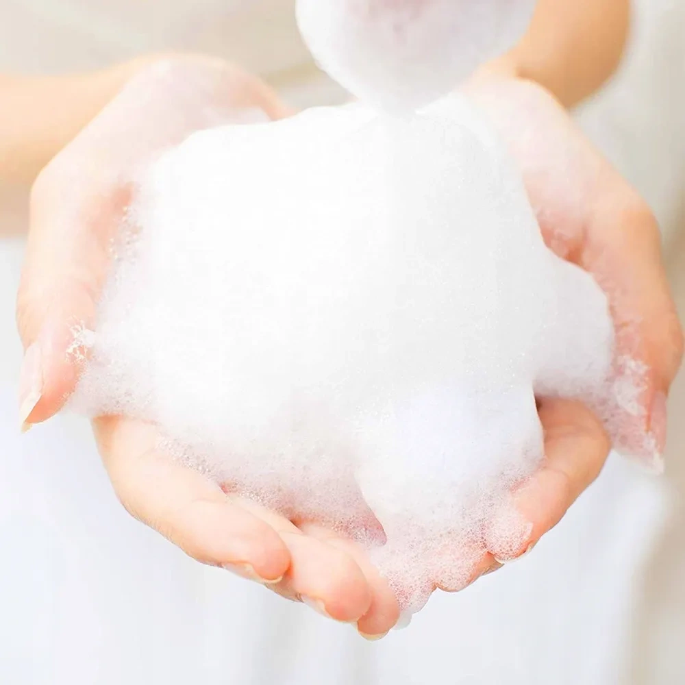 Specjalna pompka wtłacza powietrze do mieszanki płynu, tworząc delikatną, ale skuteczną pianę.