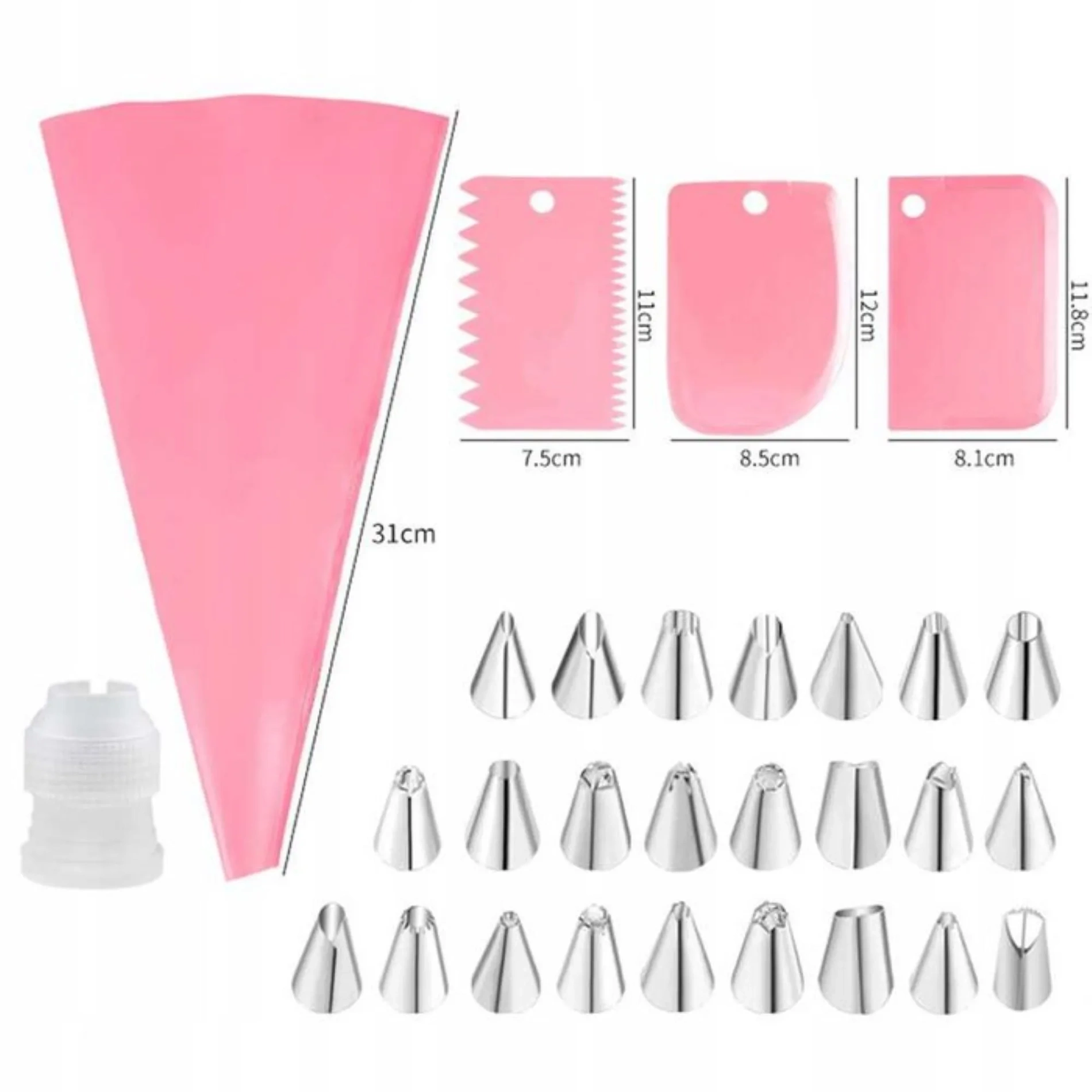 Zaprojektowany z myślą o łatwym i precyzyjnym dekorowaniu ciast i tortów, ten zestaw zawiera wszystko, czego potrzebujesz, aby stworzyć piękne i wyjątkowe wypieki.