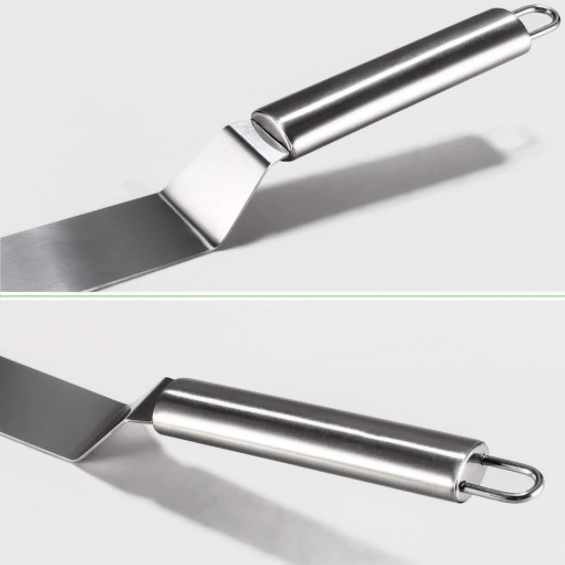Praktyczna i niezawodna łopatka cukiernicza do dekorowania ciast i tortów, wykonana w całości ze stali nierdzewnej.