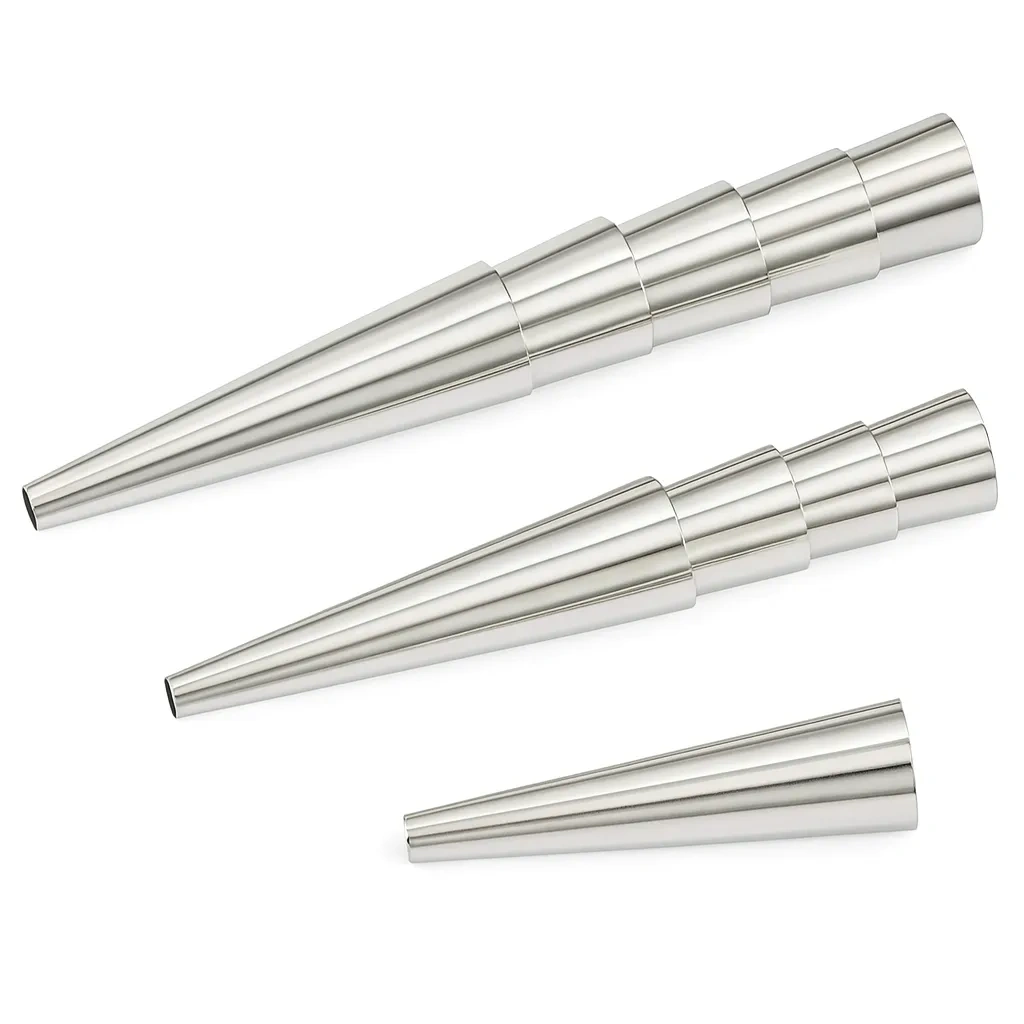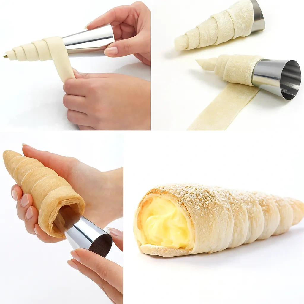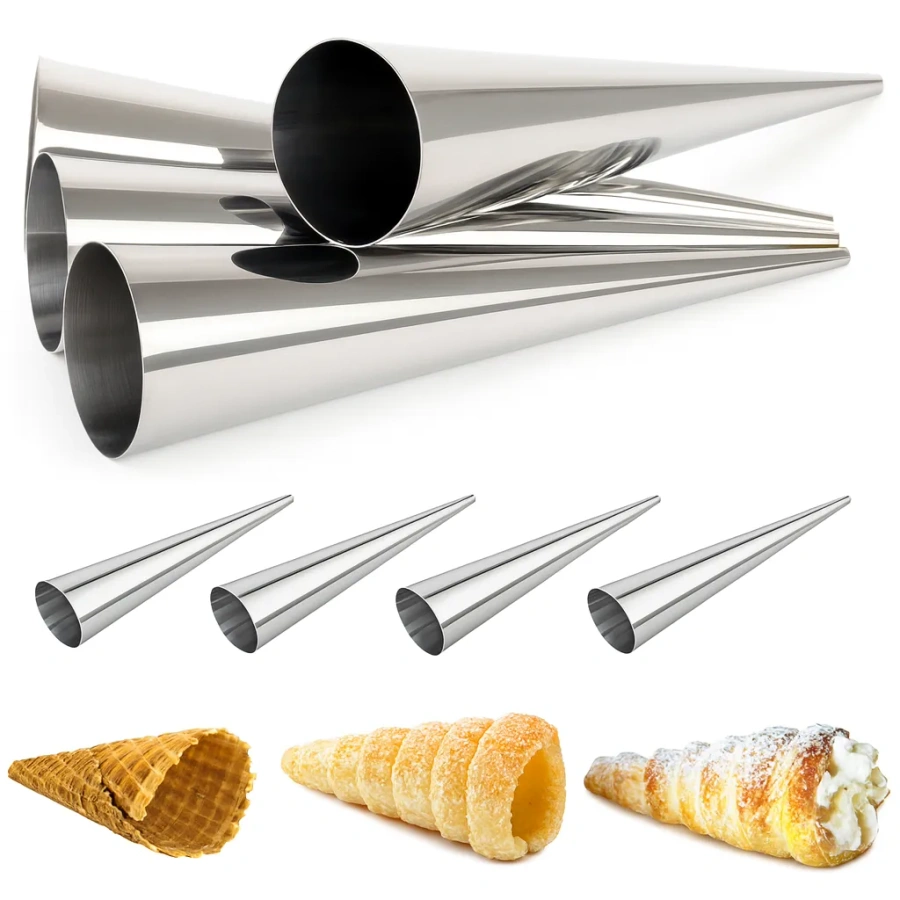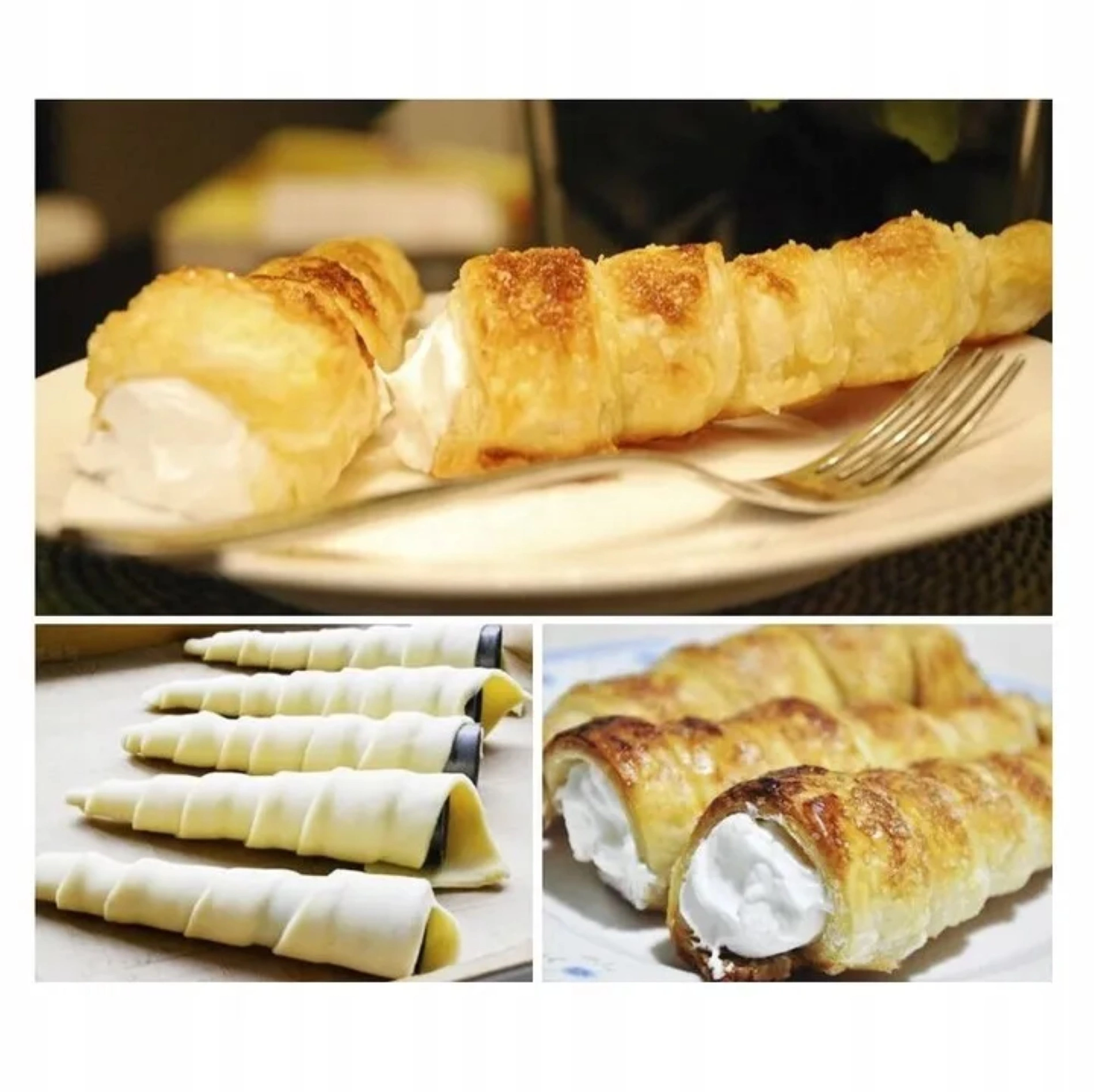 Foremki stożkowe do rurek z kremem to praktyczne narzędzie cukiernicze, które umożliwia łatwe i estetyczne przygotowanie klasycznych wypieków. Idealnie nadają się do formowania rurek, rożków oraz stożków z ciasta francuskiego, kruchego lub drożdżowego. Wykonane z trwałej stali zapewniają odporność na wysoką temperaturę oraz długą żywotność produktu. Gładka powierzchnia ułatwia zdejmowanie wypieków po pieczeniu. Foremki sprawdzą się zarówno w domowej kuchni, jak i w profesjonalnych cukierniach, gwarantując powtarzalny kształt i estetyczny efekt końcowy.