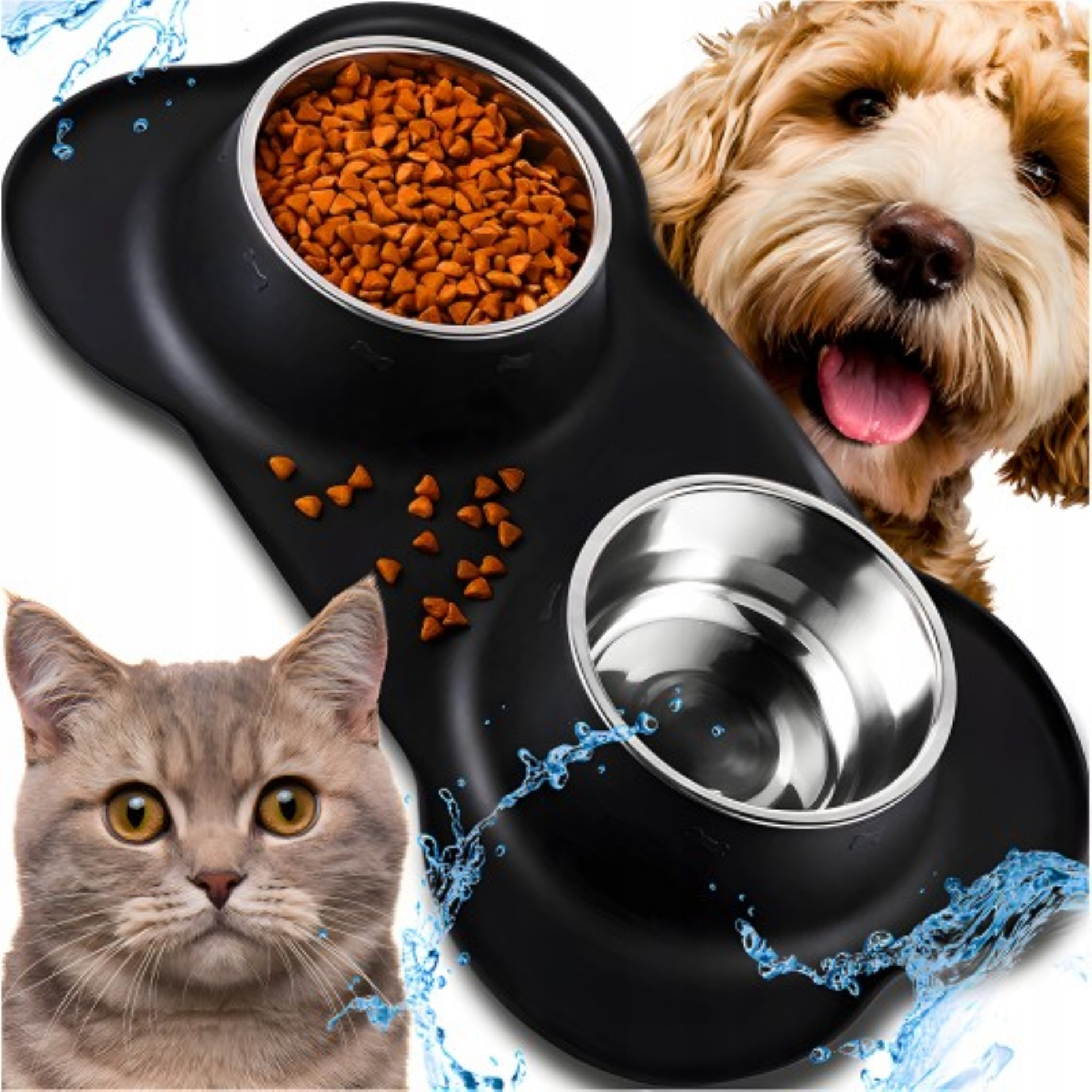 Podwójna miska metalowa dla psa i kota 45x25 cm