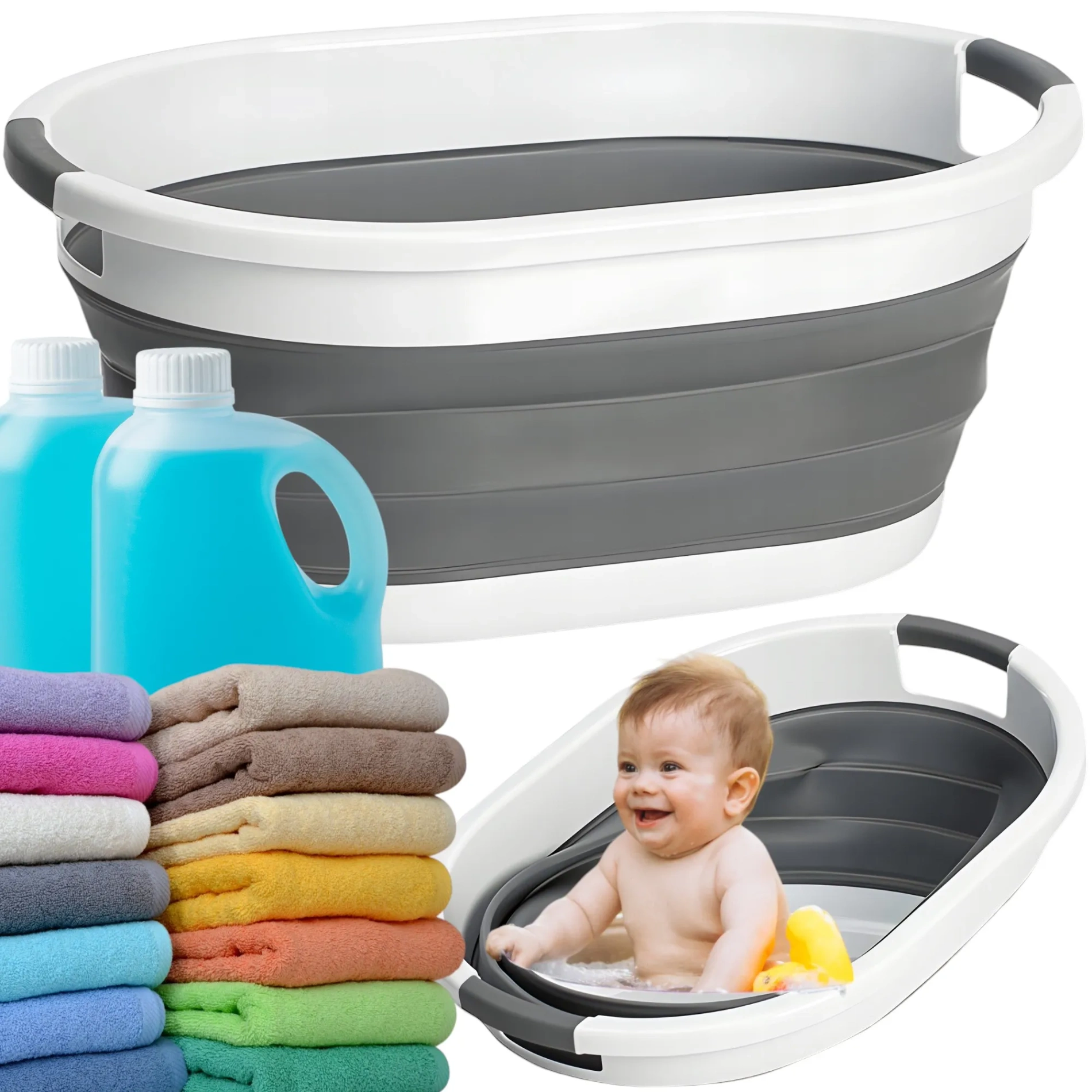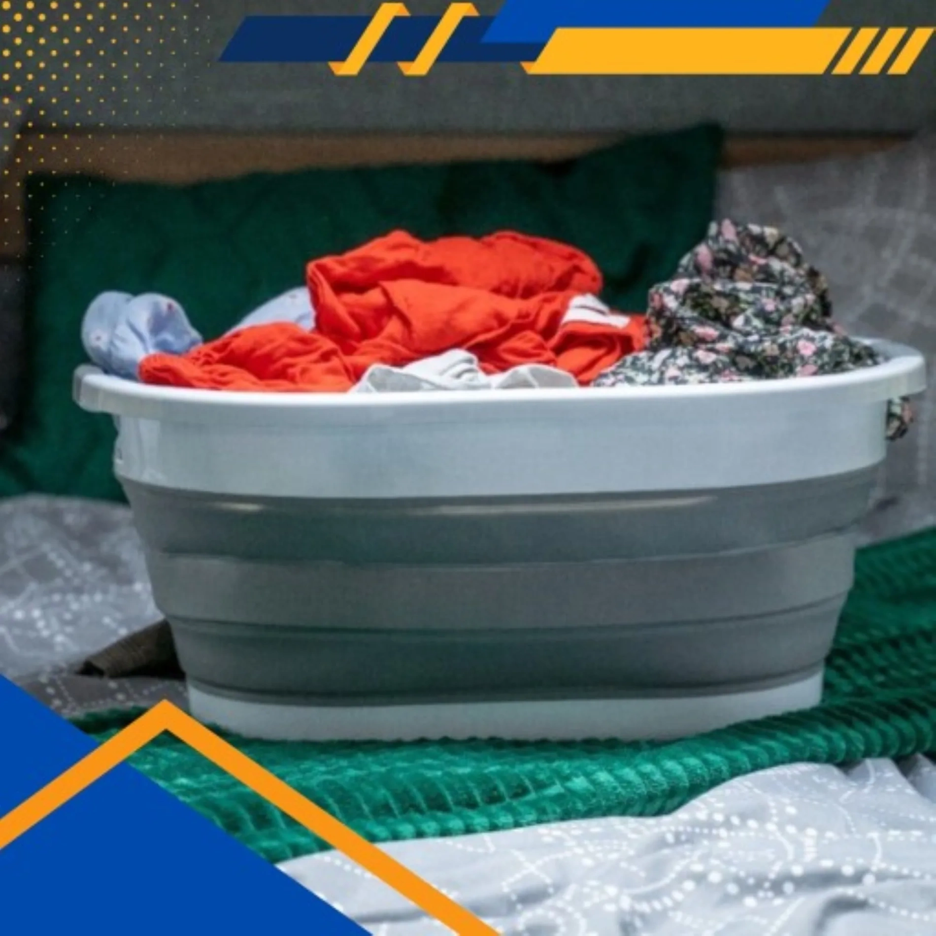 Doskonale sprawdza się w domu jako kosz na pranie, bieliznę czy miskę kąpielową dla dzieci, a także w podróży.