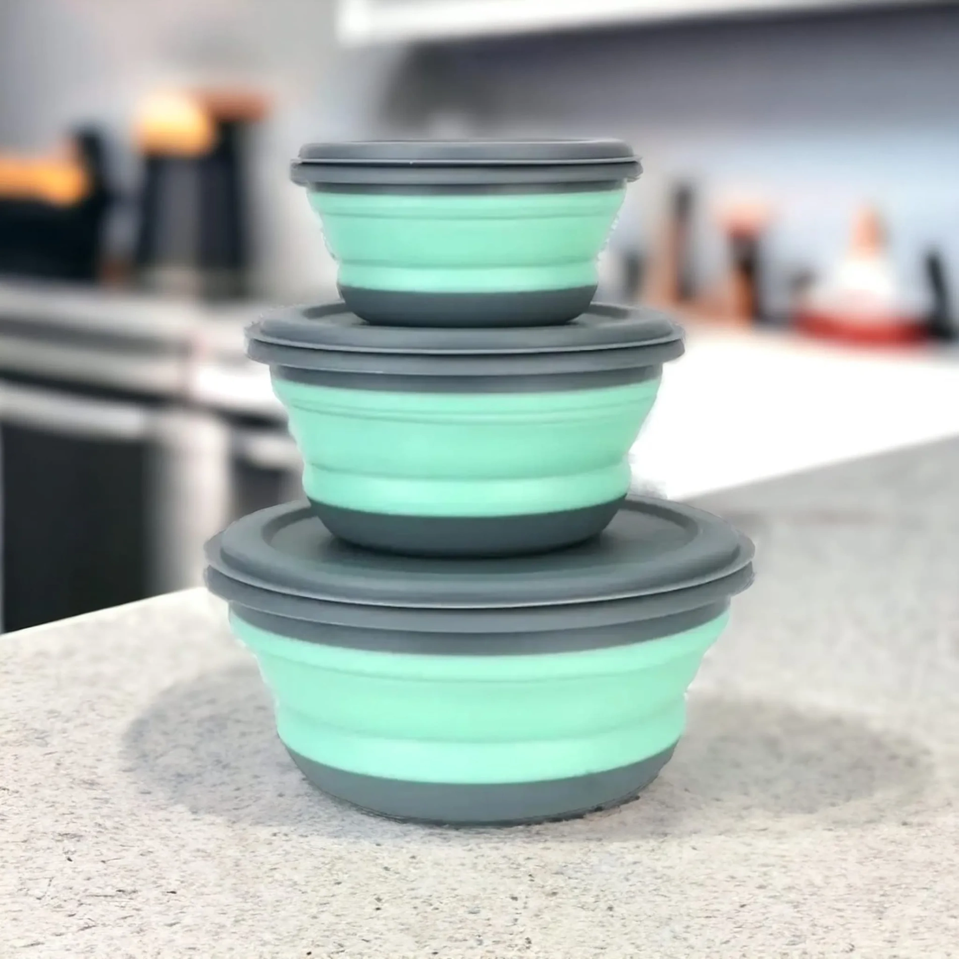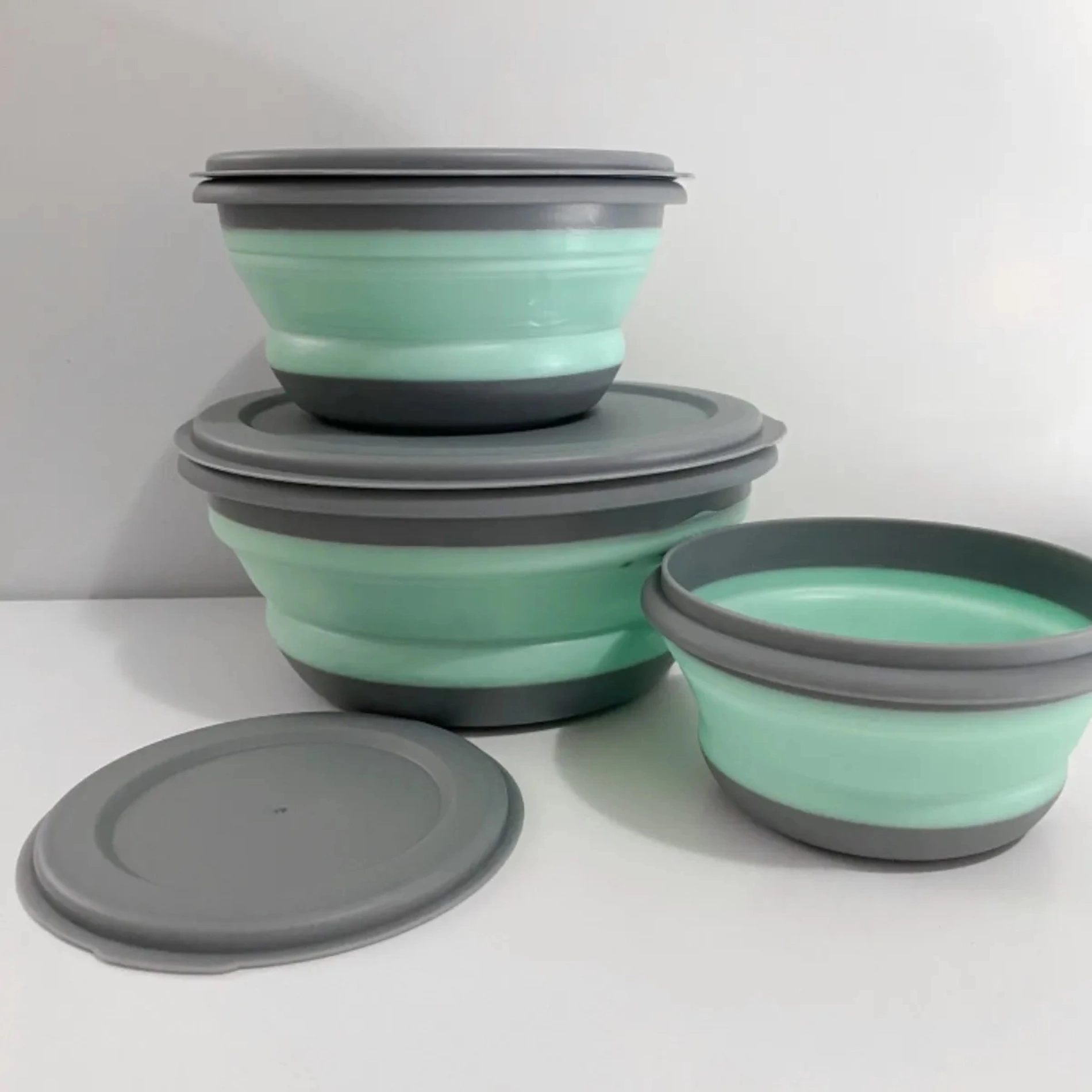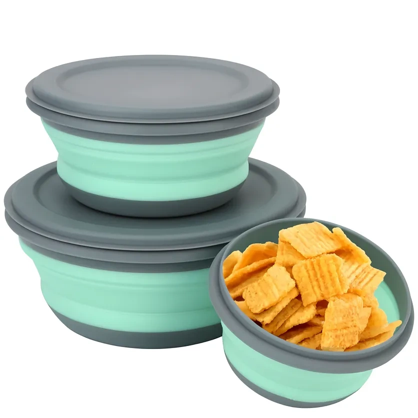Nasz zestaw 3 składanych misek z pokrywkami to praktyczny i kompaktowy wybór zarówno na kemping, podróże, jak i lunche do pracy czy szkoły.