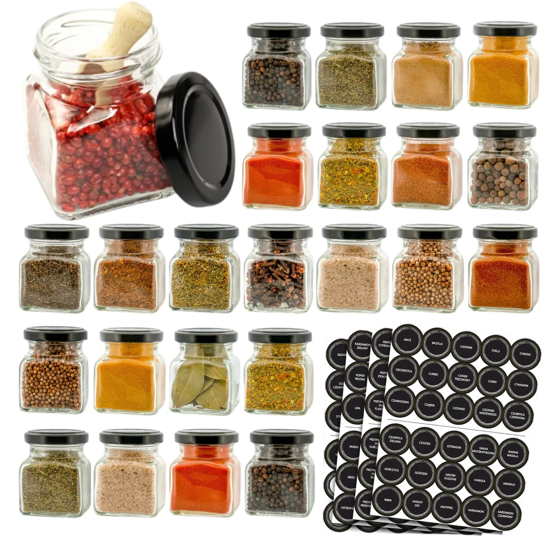 Aż 24 sztuki - idealne do przechowywania różnych przypraw i produktów sypkich.