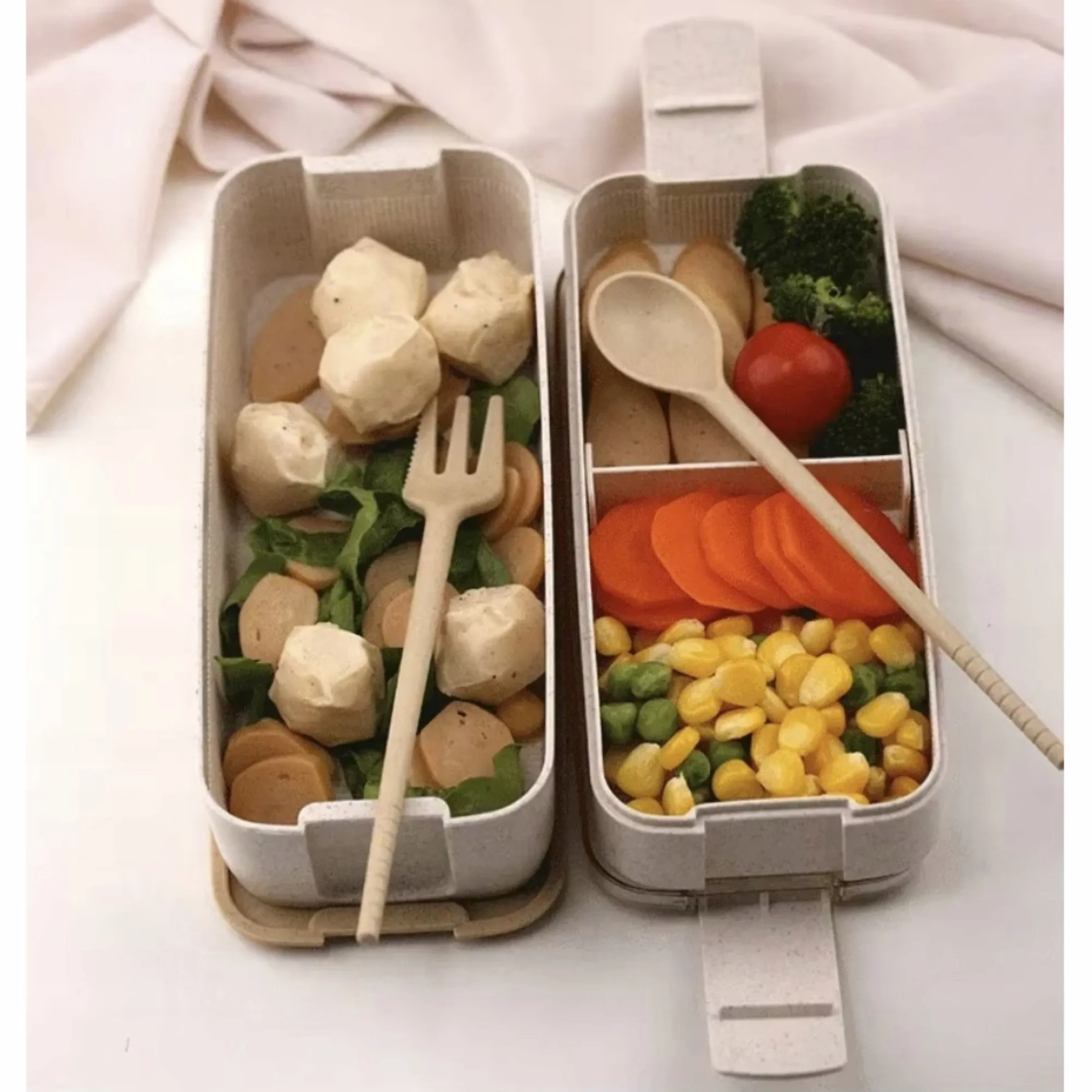 Produkt posiada 2 pojemniki ułożone piętrowo, które ułatwią oddzielanie różnych składników, unikając mieszania się smaków.