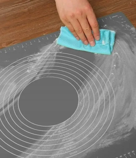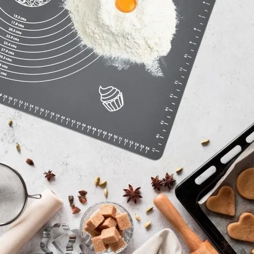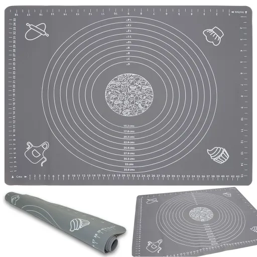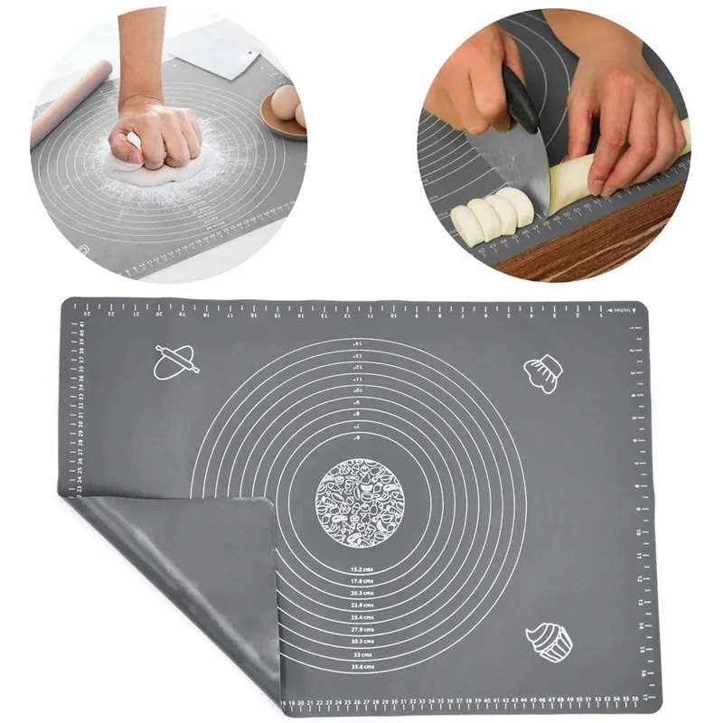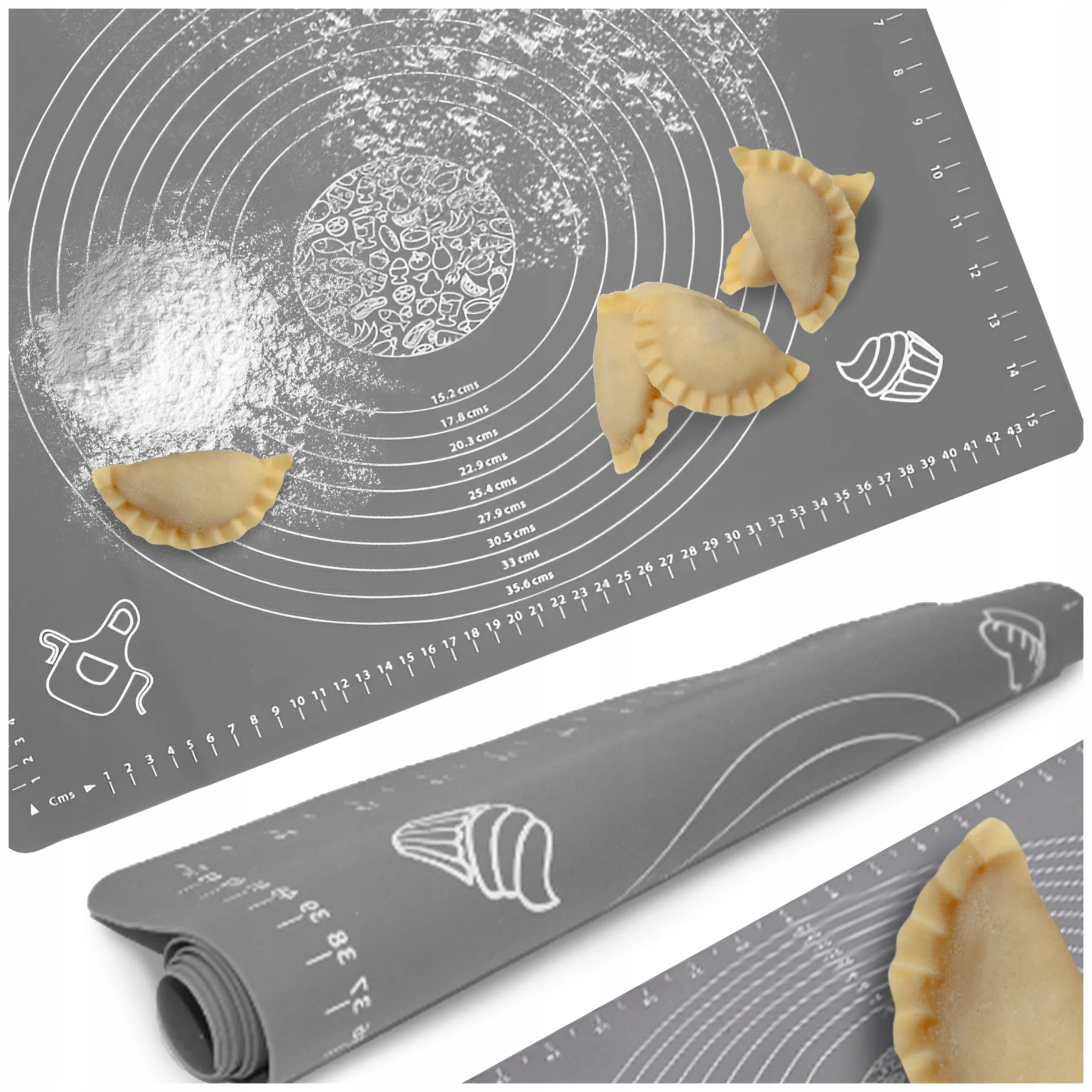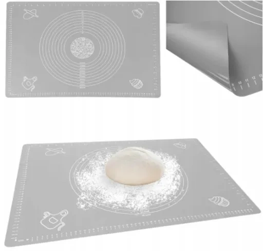 Nowoczesna, zwijana mata silikonowa, z jednej strony mamy powłokę zapobiegającą przywieraniu, z drugiej strony świetnie trzyma się blatu zapobiegając przesuwaniu maty.