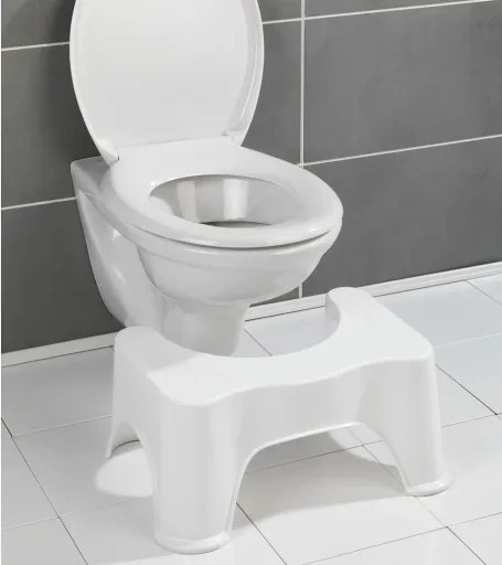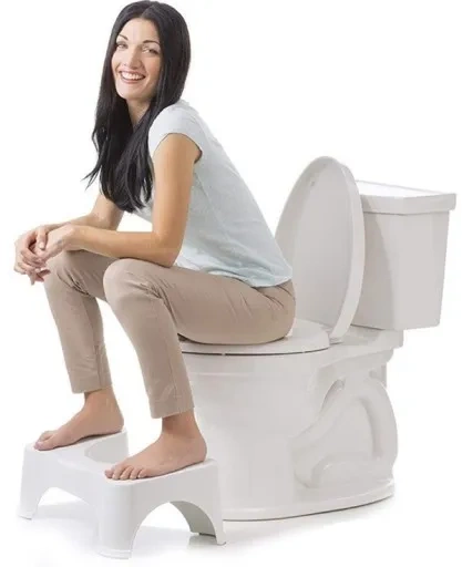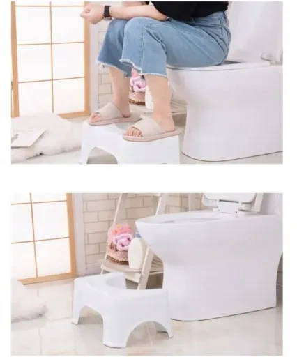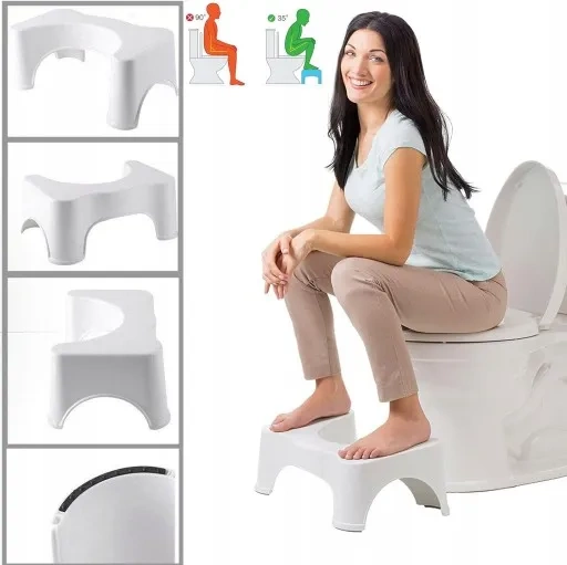 Podnóżek toaletowy to narzędzie pomagające w przybraniu prawidłowej pozycji ciała w czasie z korzystania z toalety.