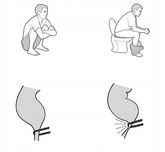 Jest ona naturalną pozycją człowieka przy wypróżnianiu, ponieważ jelita nie są wtedy zwinięte.