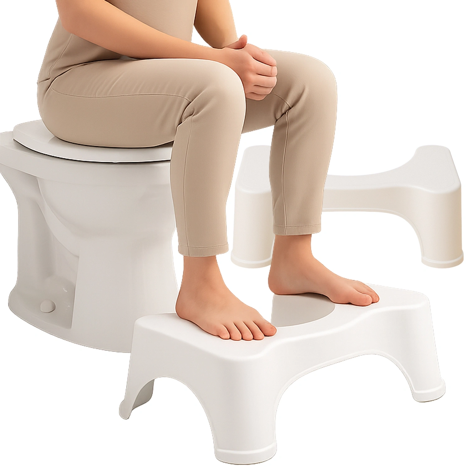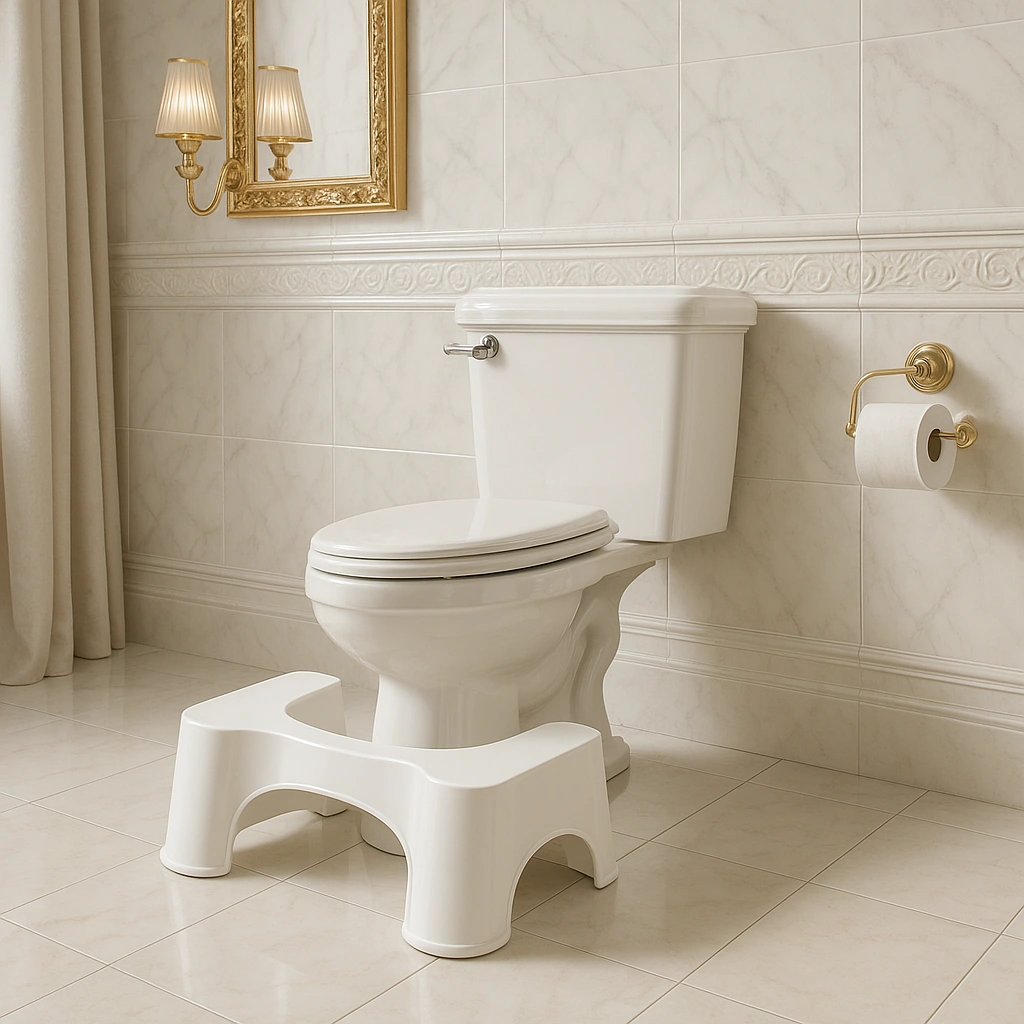 Podnóżek toaletowy to narzędzie pomagające w przybraniu prawidłowej pozycji ciała w czasie z  korzystania z toalety.