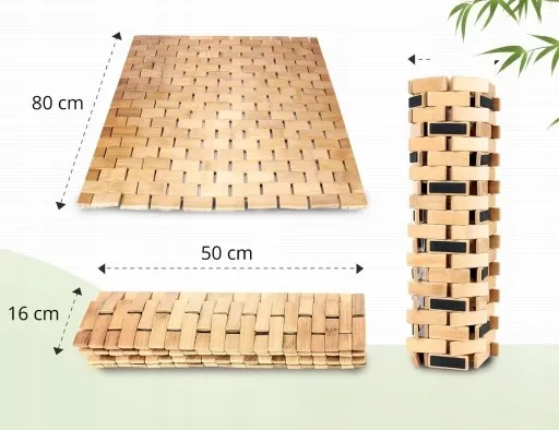 Nasza mata bambusowa o wymiarach 80x50 cm to doskonałe rozwiązanie, które łączy w sobie estetykę, trwałość i komfort użytkowania.