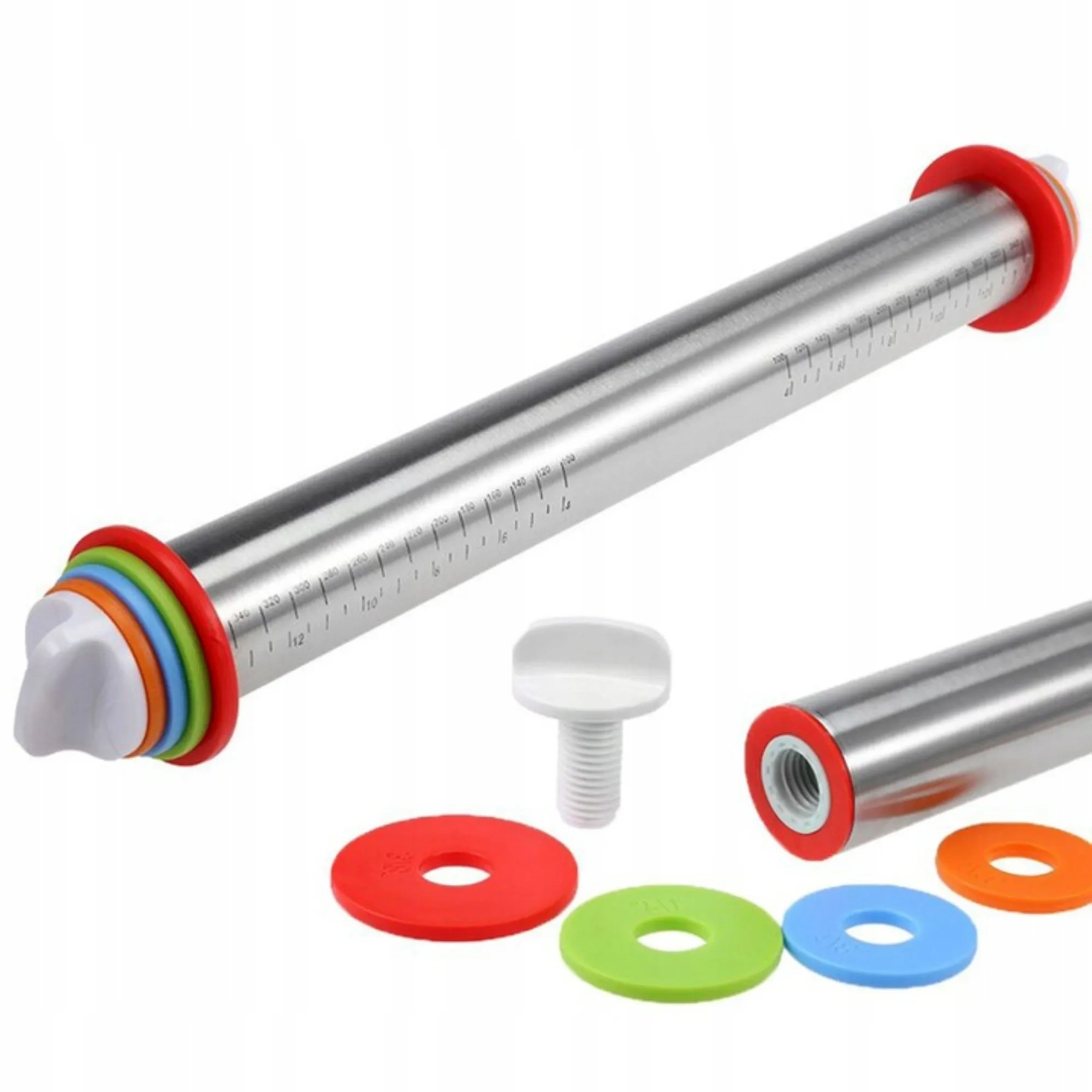 Stalowy wałek z możliwością regulacji grubości wałkowanego ciasta.