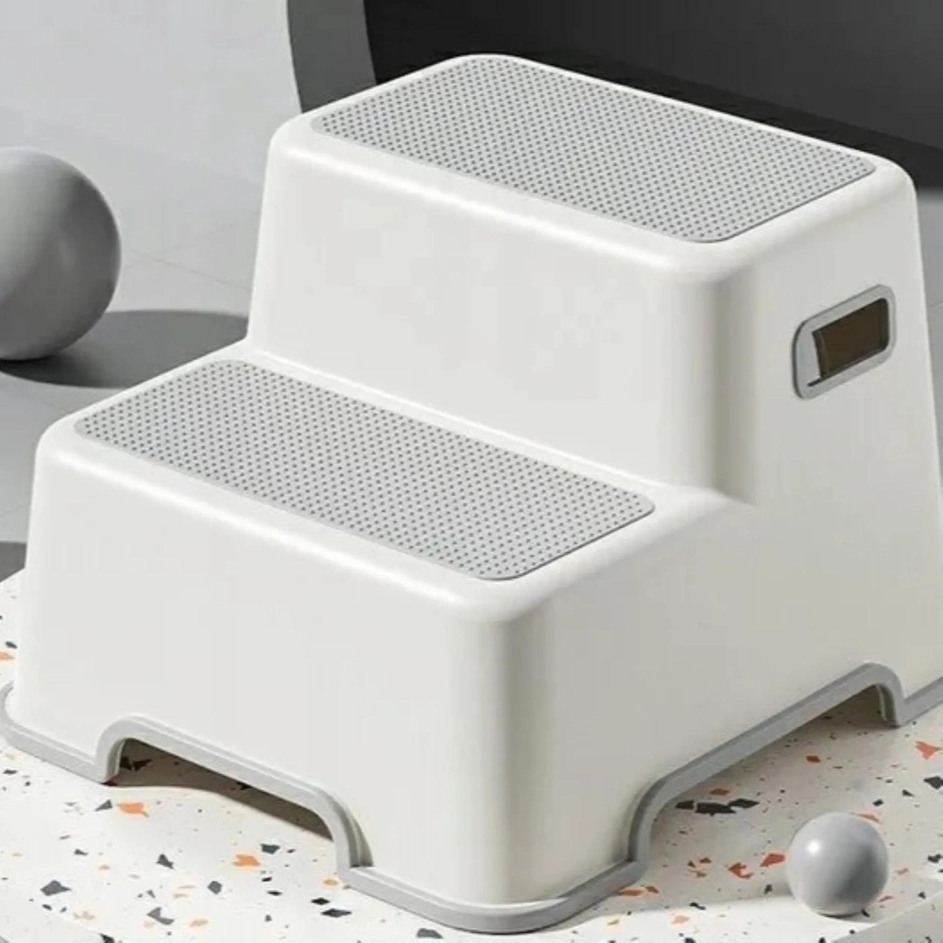Idealnie sprawdzi się w łazience przy umywalce, w kuchni czy przy sięganiu do wyższych półek.