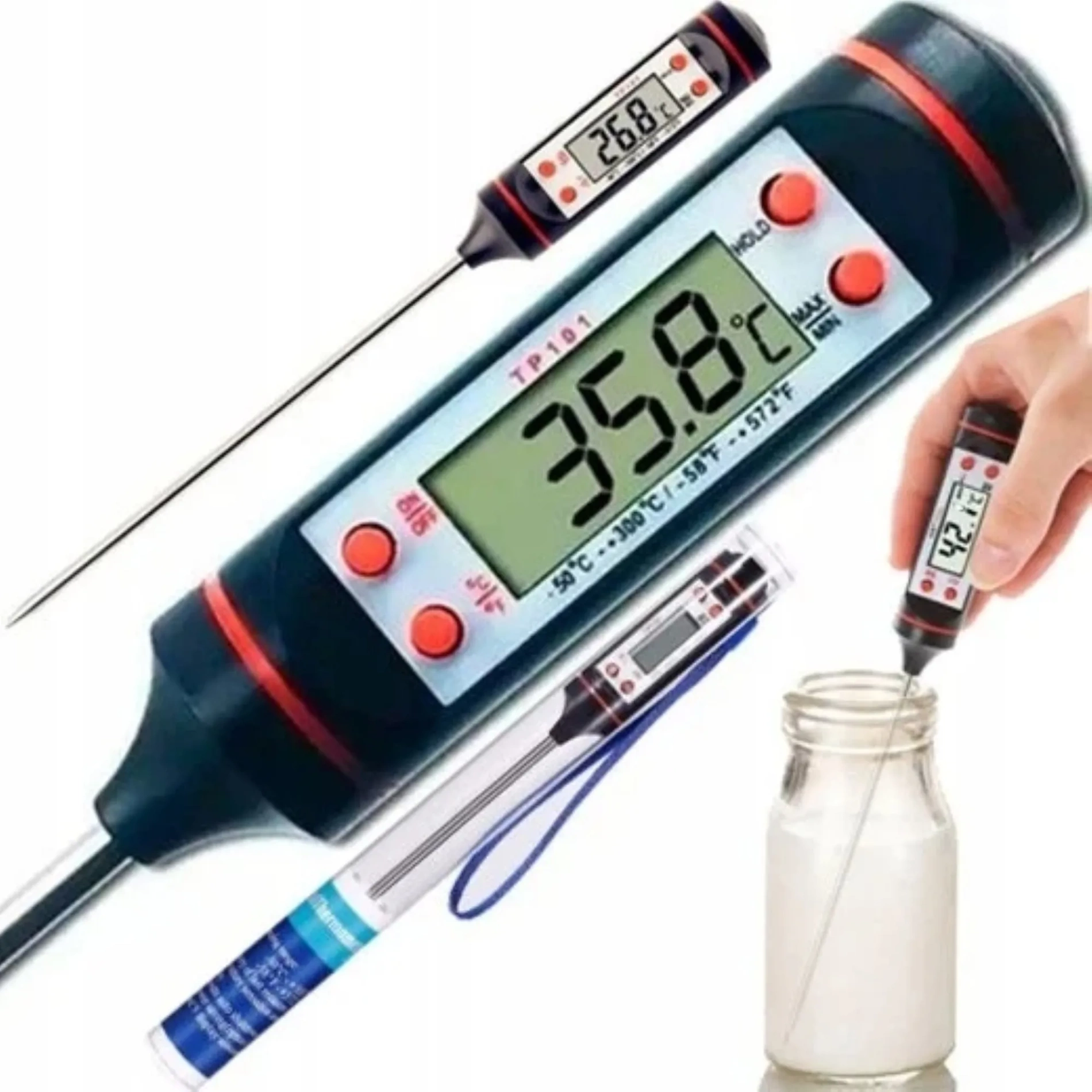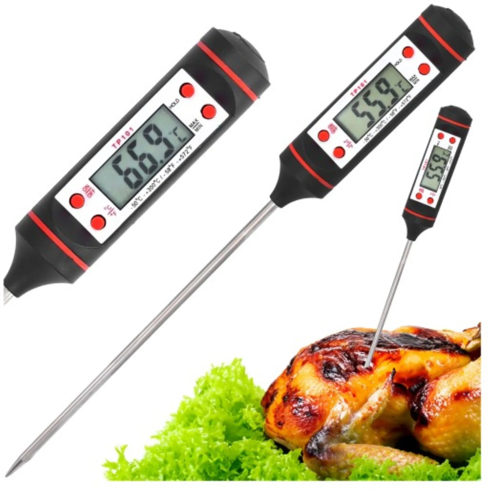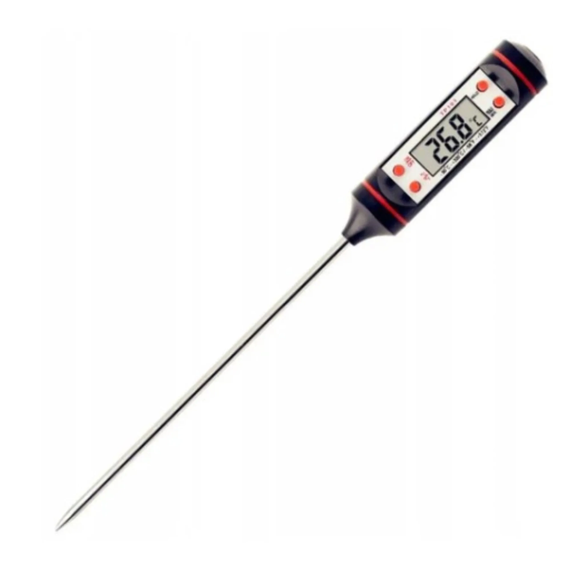 Elektroniczny termometr kuchenny z sondą – precyzyjne narzędzie do pomiaru temperatury potraw i napojów.