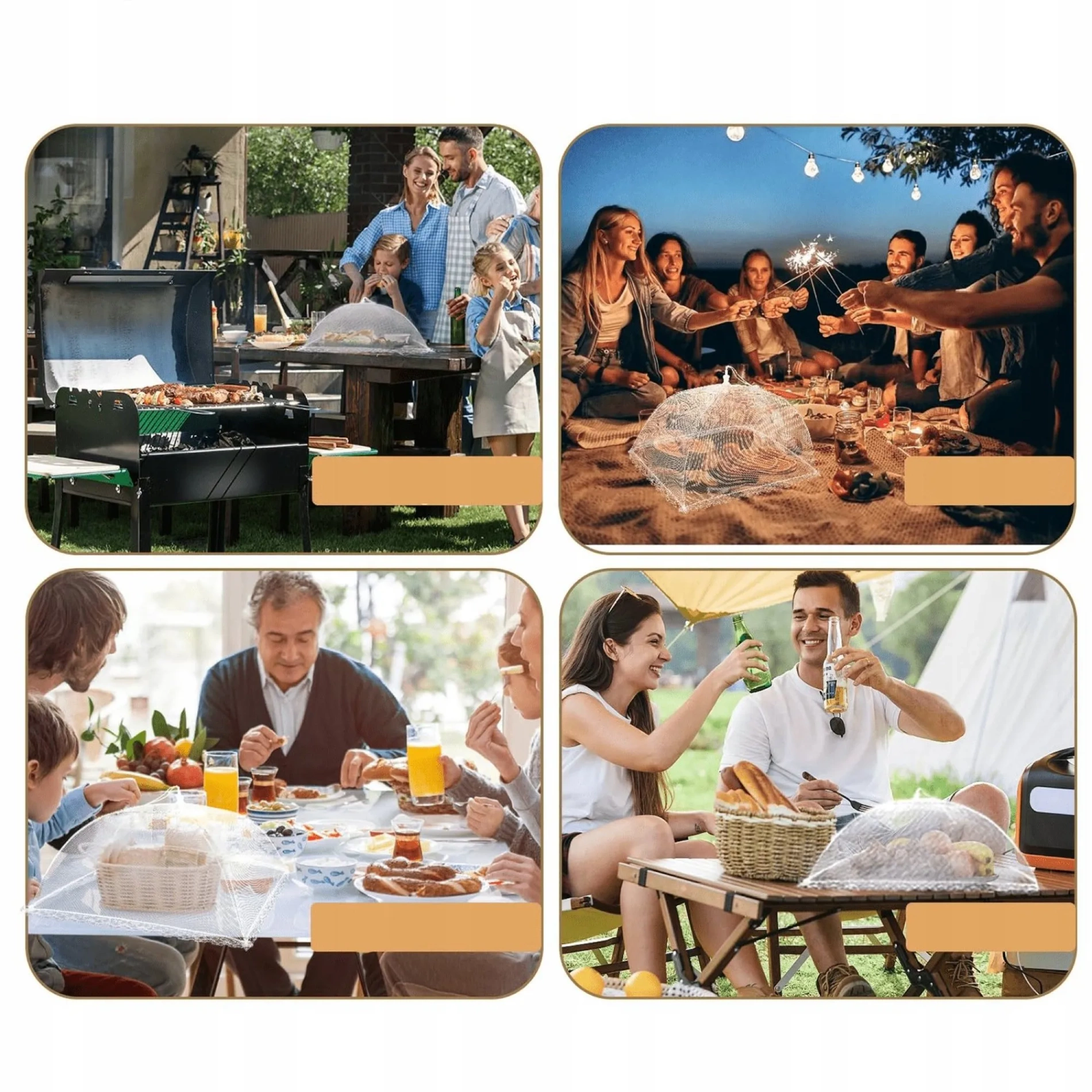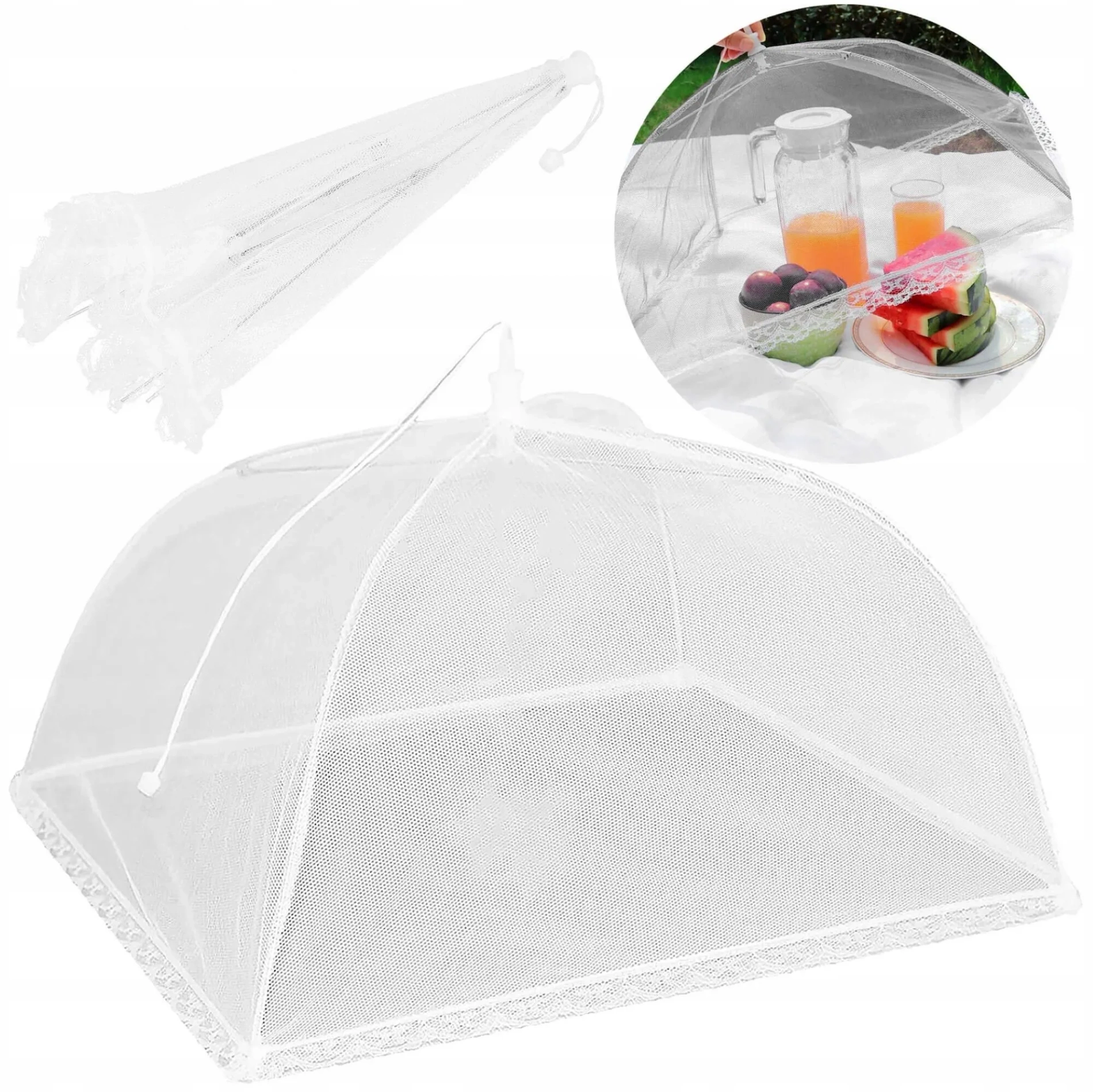 Praktyczna, składana moskitiera na jedzenie, która skutecznie zabezpiecza potrawy, ciasta, owoce oraz napoje przed muchami, osami, komarami, pyłem i innymi zanieczyszczeniami.