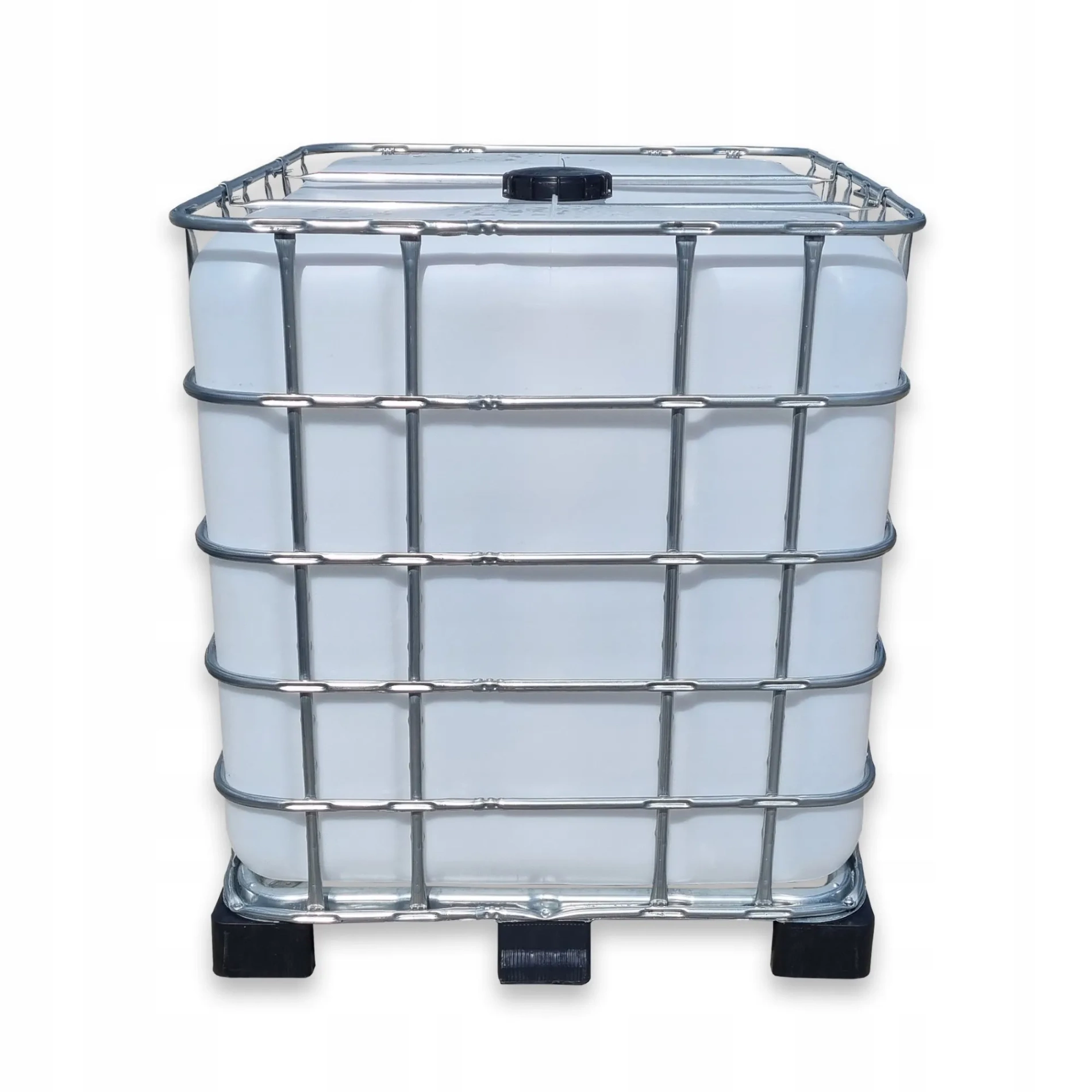 Wysokiej jakości woda demineralizowana ultra czysta dostarczana w solidnym paletopojemniku typu MAUZER o pojemności 1000 litrów.
