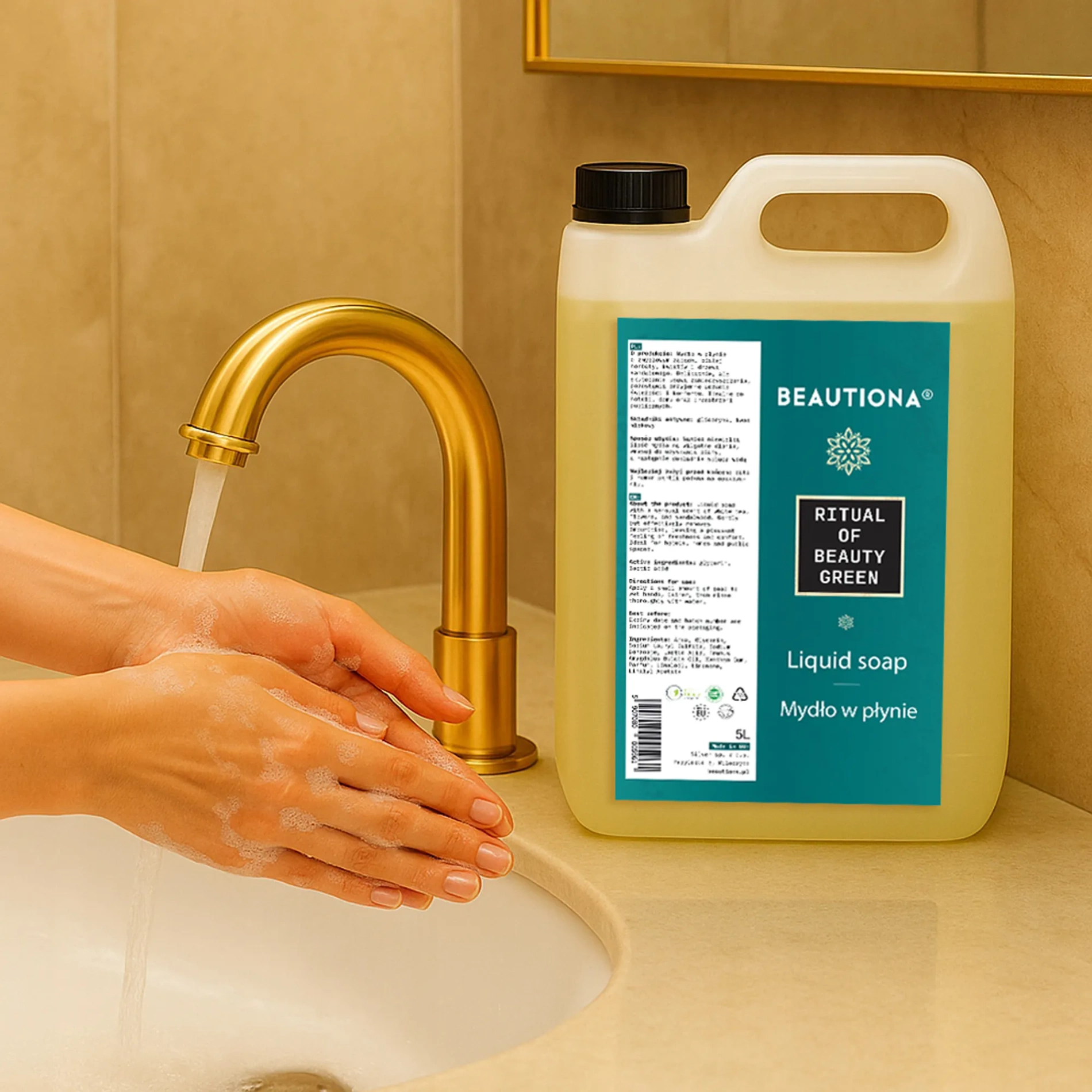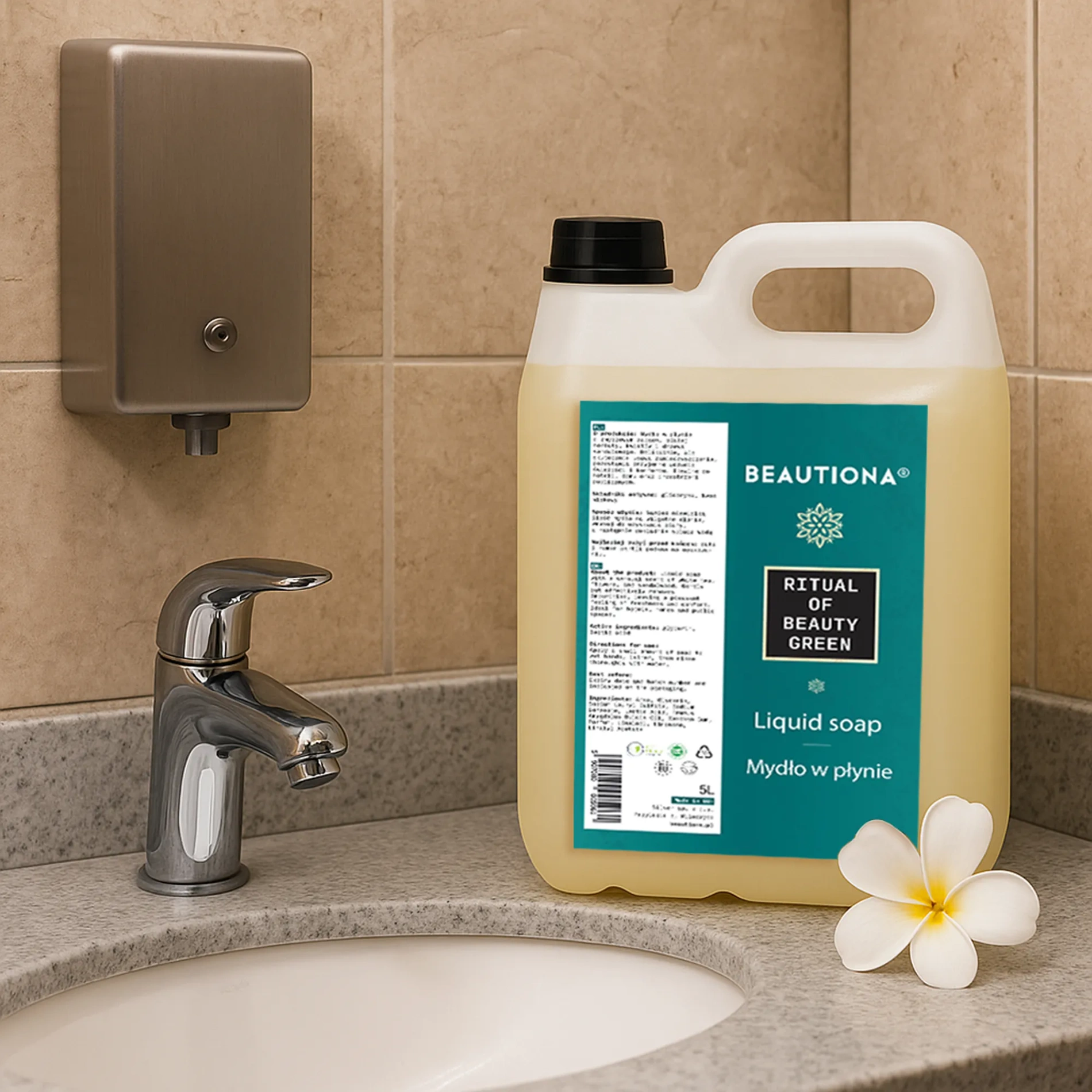 Duże, ekonomiczne opakowanie 5L idealnie sprawdza się do napełniania dozowników.