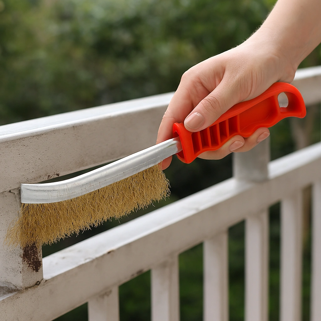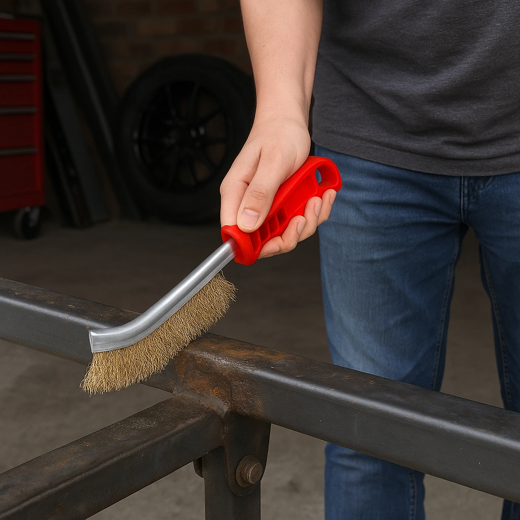 Wytrzymała, ręczna szczotka druciana z mosiężnym włosiem idealnie sprawdza się przy czyszczeniu trudno dostępnych i mocno zabrudzonych powierzchni.
