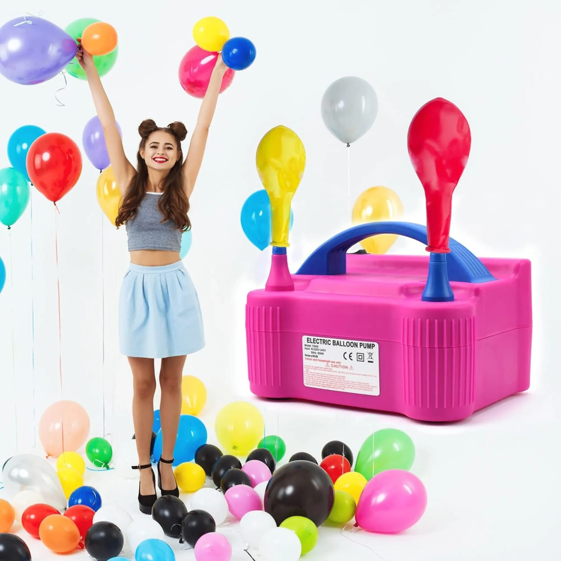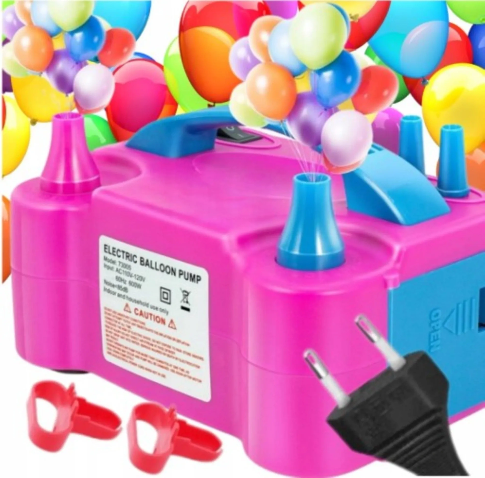 Elektryczna pompka do balonów z 2 dyszami to szybkie, wygodne i wydajne urządzenie stworzone do ekspresowego pompowania balonów. Idealna na imprezy, eventy, urodziny, wesela czy dekoracje okolicznościowe.