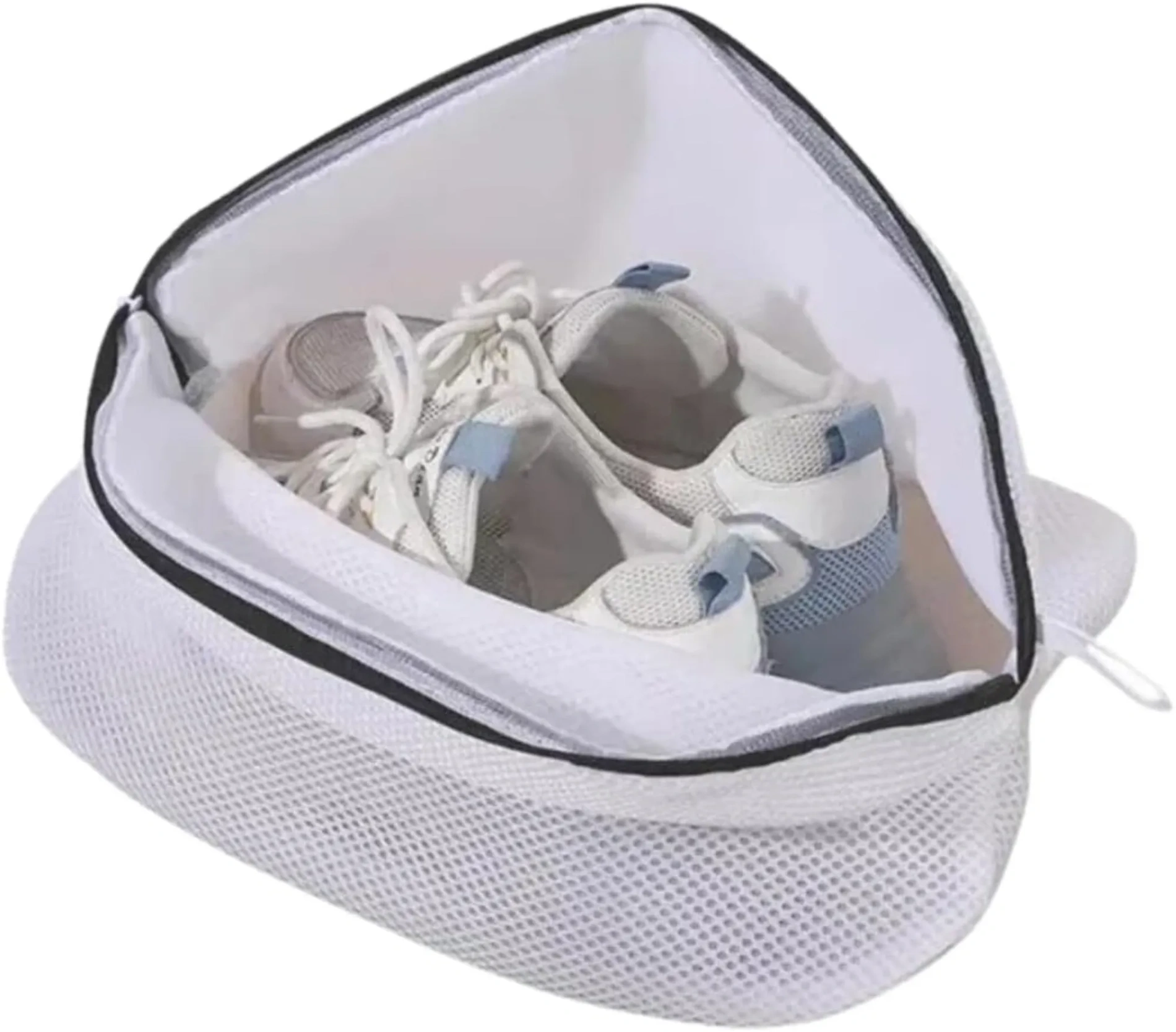 Praktyczny worek, siatka do prania obuwia. Doskonale chroni buty przed zniszczeniem podczas prania w pralce automatycznej.