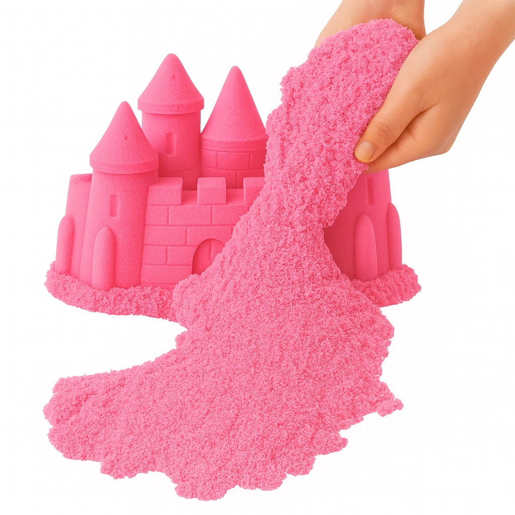 Pozwala dzieciom tworzyć zamki, figurki, tunele i dowolne kształty – a przy tym nie wysycha, dzięki czemu może służyć przez długi czas.