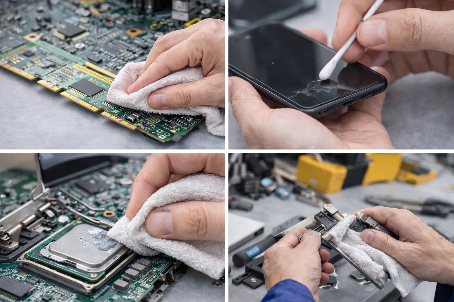 Izopropanol 70% techniczny to uniwersalny preparat przeznaczony do czyszczenia, przemywania oraz odtłuszczania różnego rodzaju powierzchni. Optymalne stężenie sprawia, że produkt doskonale sprawdza się w codziennej pracy serwisów, zakładów produkcyjnych oraz warsztatów. Skutecznie usuwa zabrudzenia, tłuszcze, oleje, ślady po klejach oraz typowe zanieczyszczenia eksploatacyjne. Preparat szybko odparowuje z czyszczonych powierzchni, nie pozostawiając smug ani osadów (przy prawidłowym użyciu). Izopropanol może być stosowany do ręcznego czyszczenia (ściereczki bezpyłowe, waciki) oraz w wybranych zastosowaniach serwisowych. Jest chemicznie neutralny wobec wielu materiałów używanych w elektronice, elektrotechnice, optyce, motoryzacji oraz przemyśle precyzyjnym.