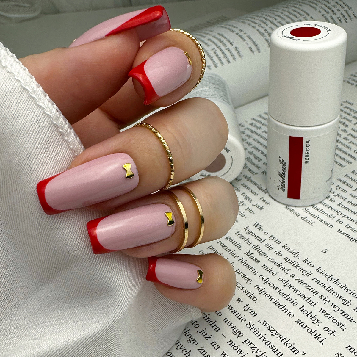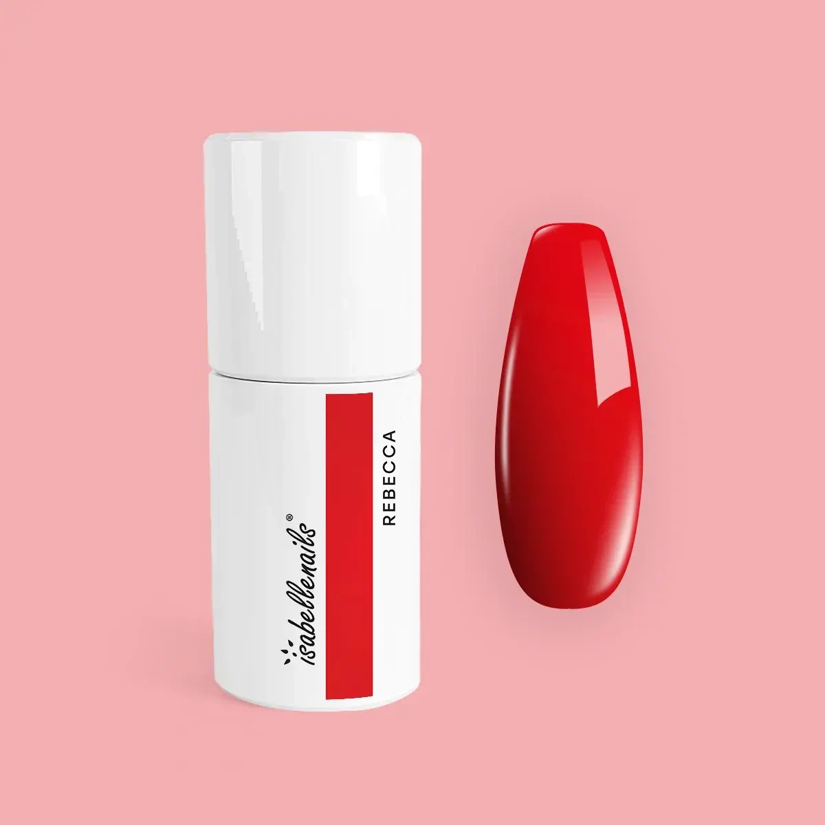 Lakier hybrydowy 44. Rebecca to zmysłowy, czerwony kolor, który w jednym pociągnięciu pędzla dodaje dłoniom wyrazistego charakteru.