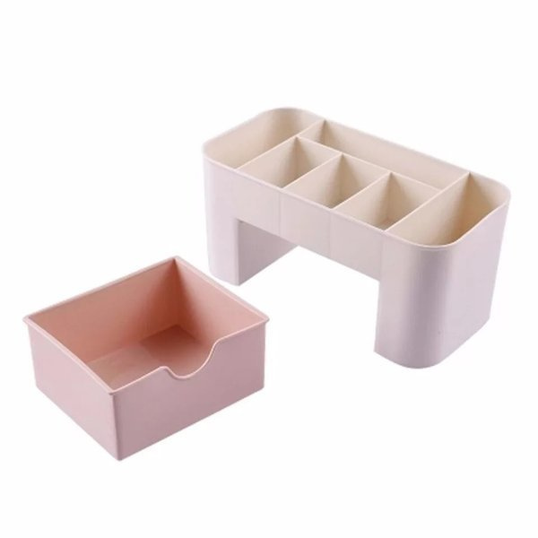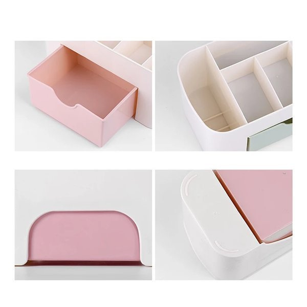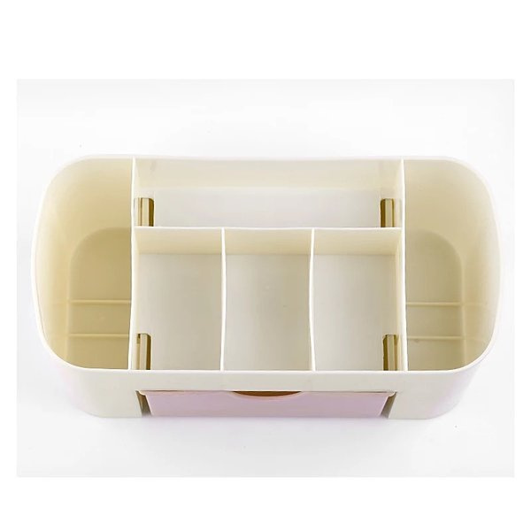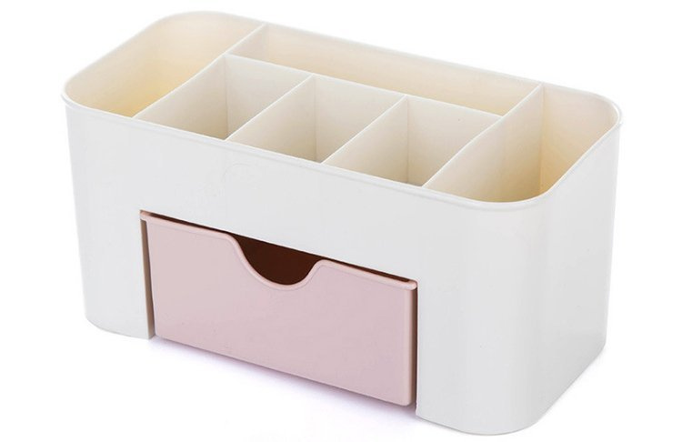 Organizator składa się z kilku różnych rozmiarów przegródek np. na pędzle i jednej wysuwanej szuflady.