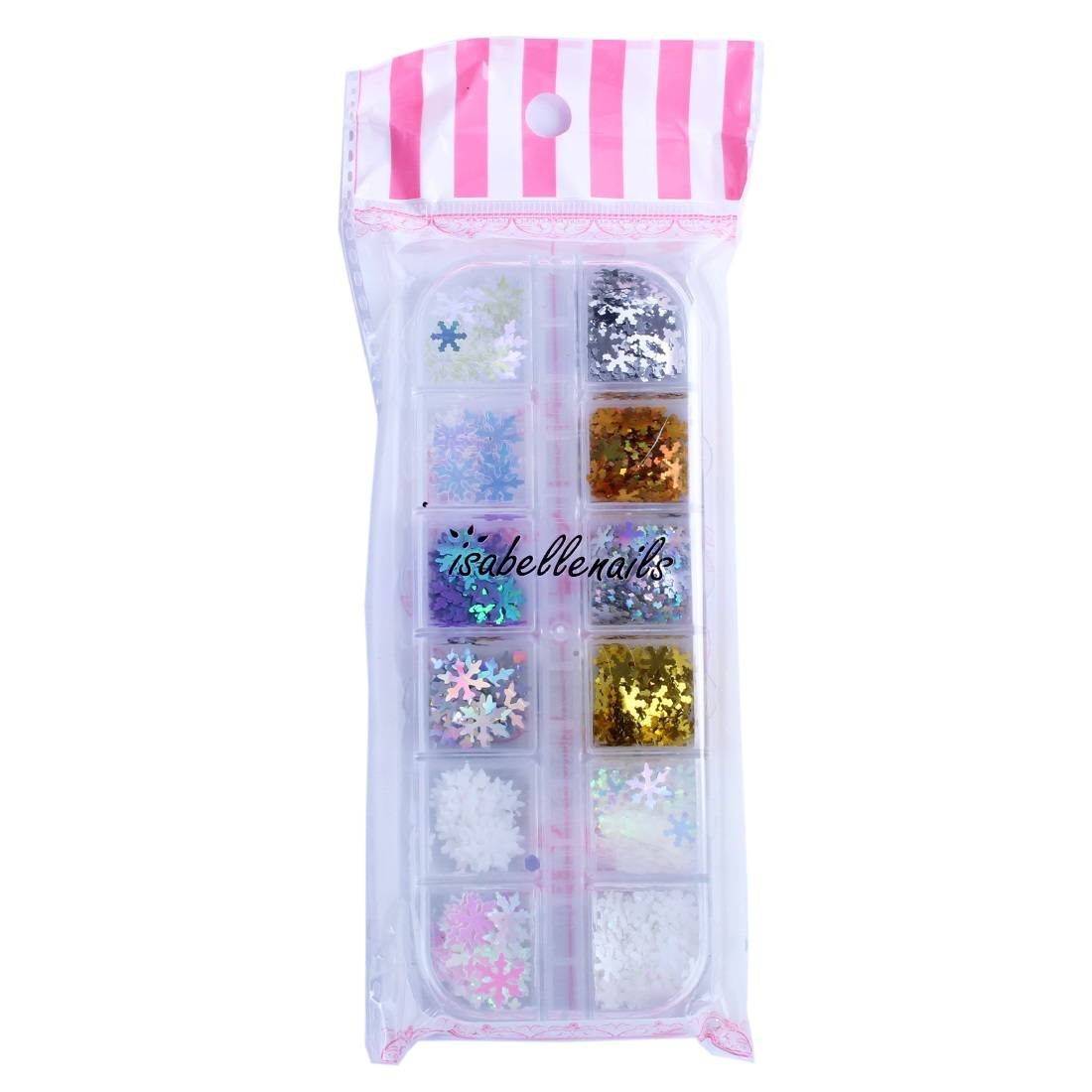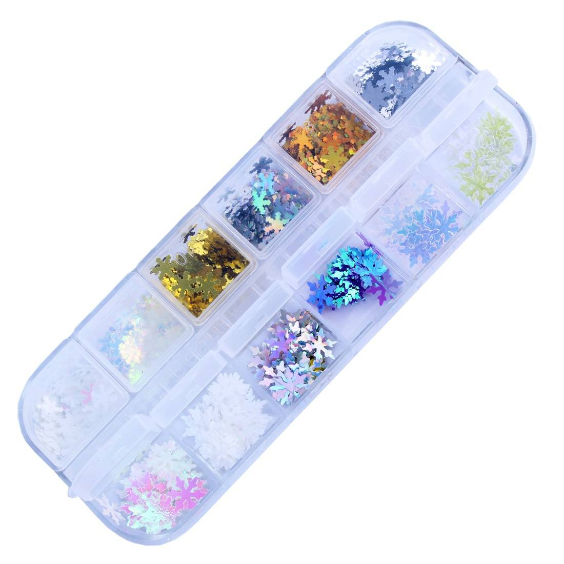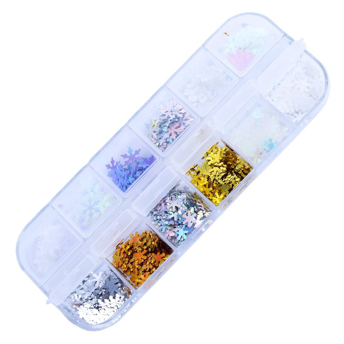 Holo ozdoby do paznokci - mix 12 wzorów śnieżynki