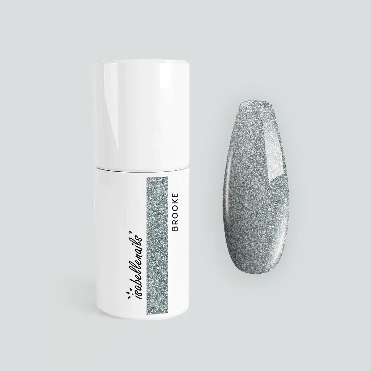 Dzięki niezwykle drobnemu srebrnemu brokatowi, lakier 93. Brooke nadaje paznokciom delikatny, wręcz mglisty efekt. Możesz zdecydować się na zastosowanie go pojedynczo, aby uzyskać subtelny błysk, bądź też użyć go jako wyjątkowego dodatku do innych kolorów. Innowacyjna formuła tego lakieru hybrydowego zapewnia nie tylko estetyczny efekt, ale również trwałość. Wystarczą dwie delikatne warstwy, aby uzyskać błyszczący manicure.