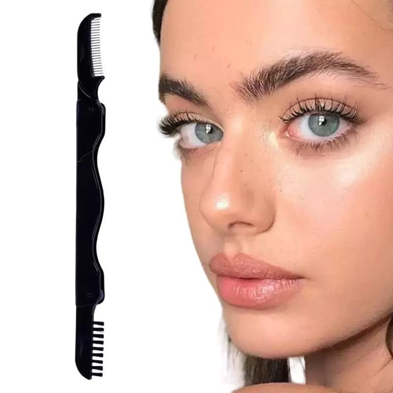 Z jednej strony przyrządu znajduje się metalowy grzebyk, którym precyzyjnie przeczeszesz włoski, a drugim końcem, gdzie zamocowana jest szczoteczka, nadasz brwiom finałowego kształtu.