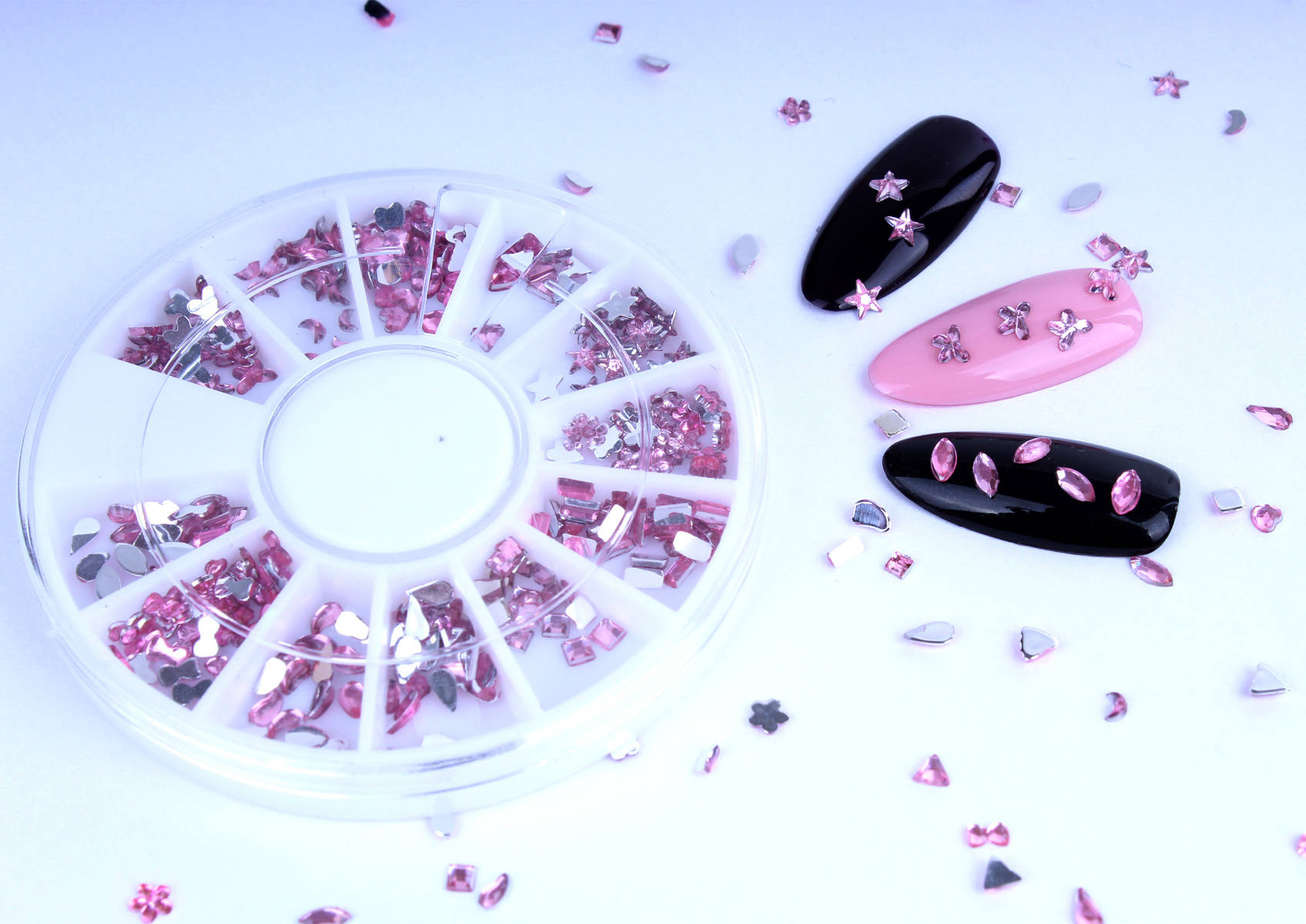 Błyszczące, różowe ozdoby do paznokci to must have każdej stylistki!