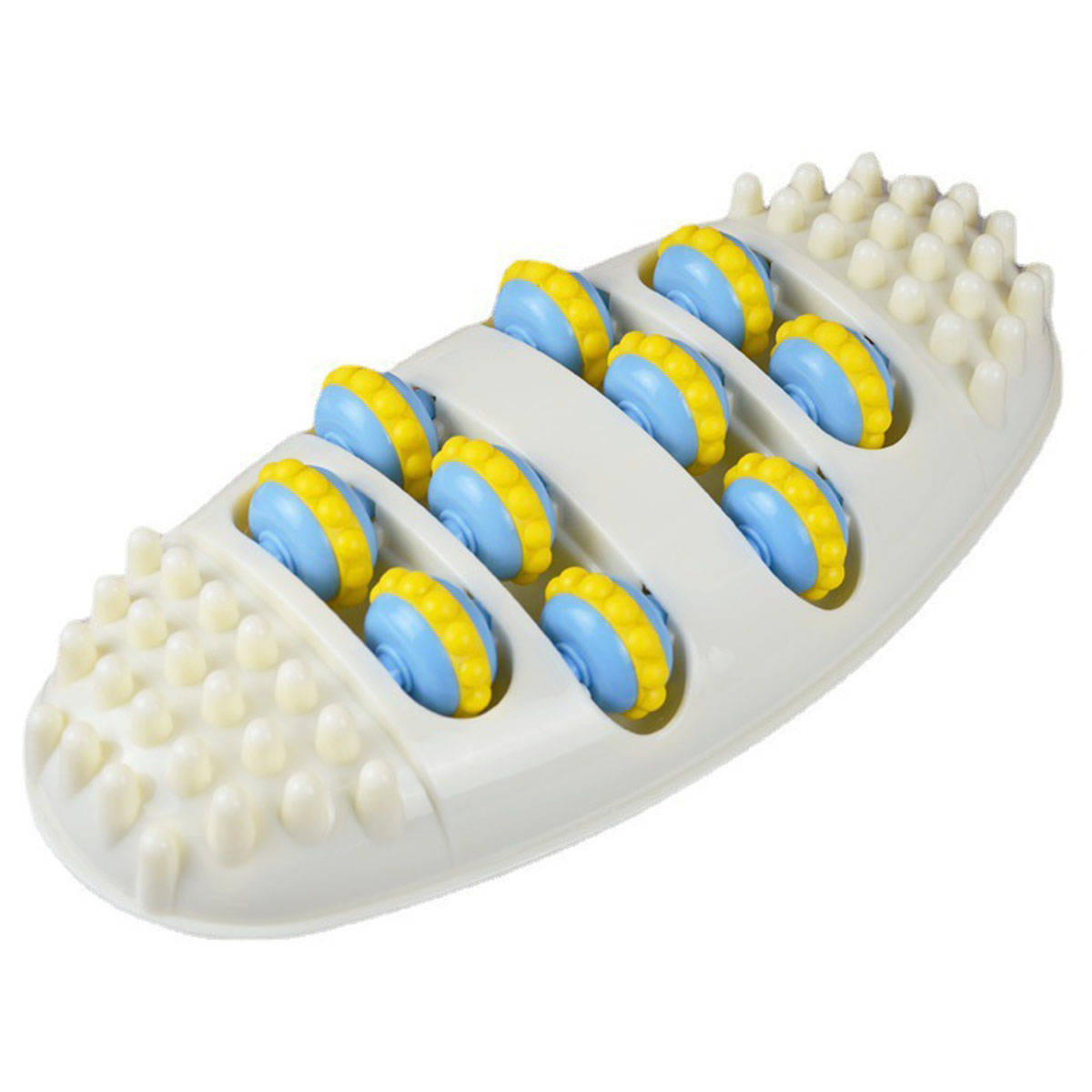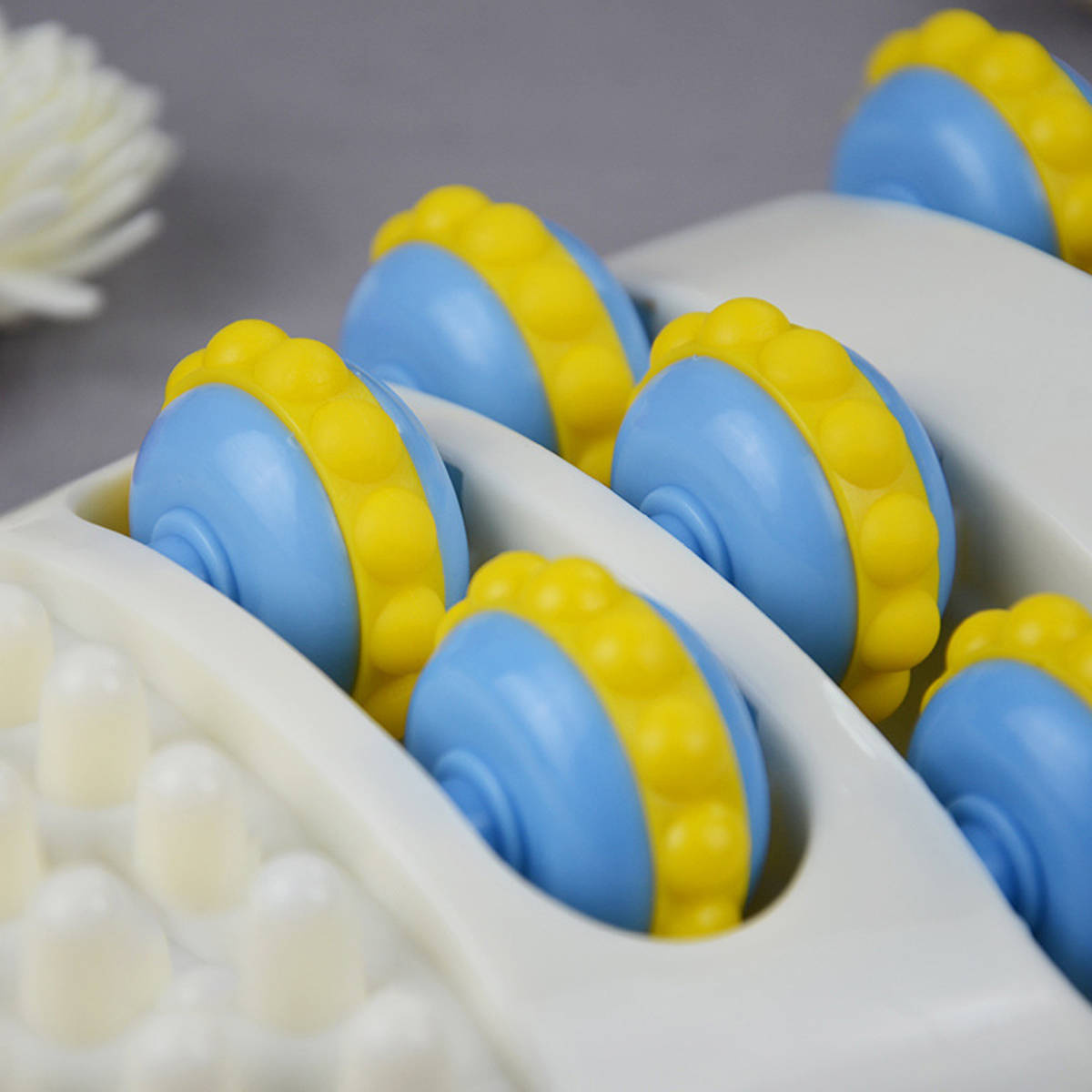 Jego plastikowe kółka z masującymi wypustkami mają na celu przynosić ulgę i odprężenie.