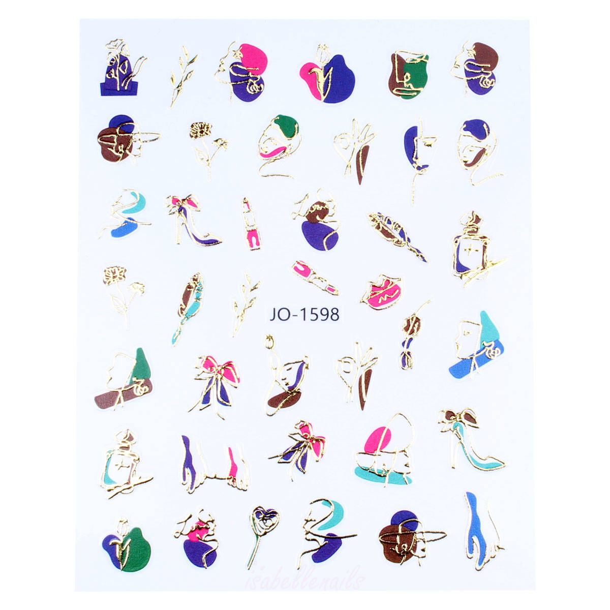 Naklejki 3D na paznokcie złote twarze line art JO-1598