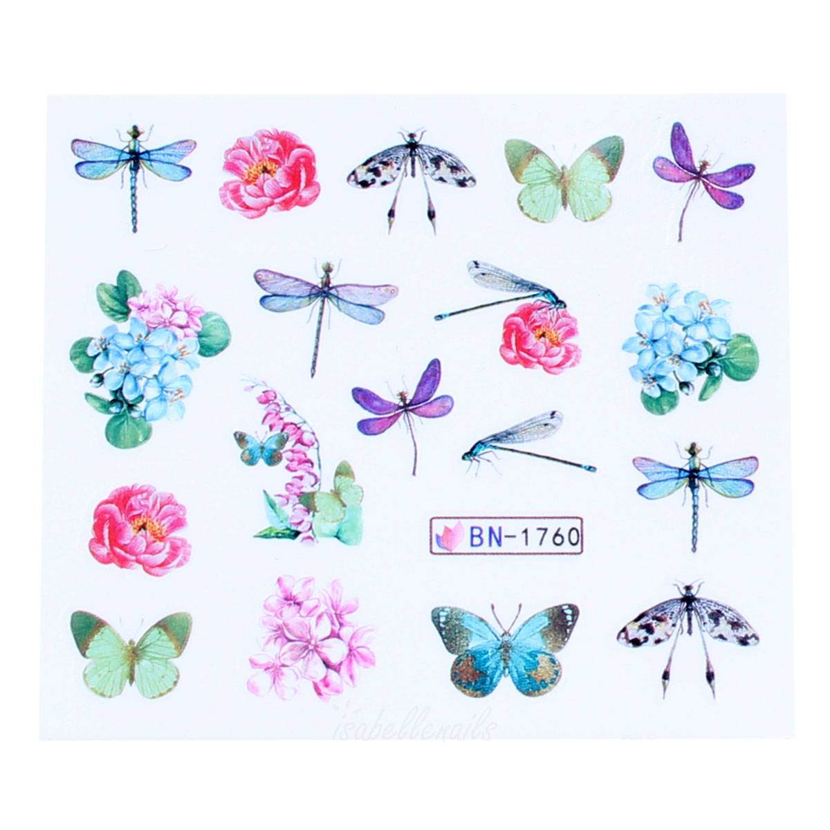 Naklejki wodne na paznokcie ważki, motyle, kwiaty BN-1760