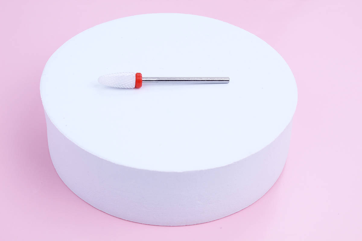 Frez ceramiczny w kształcie stożka perfekcyjnie i równocześnie delikatnie usuwa masę z całej płytki paznokcia i trudno dostępnych brzegów, nie powodując przy tym drgań.