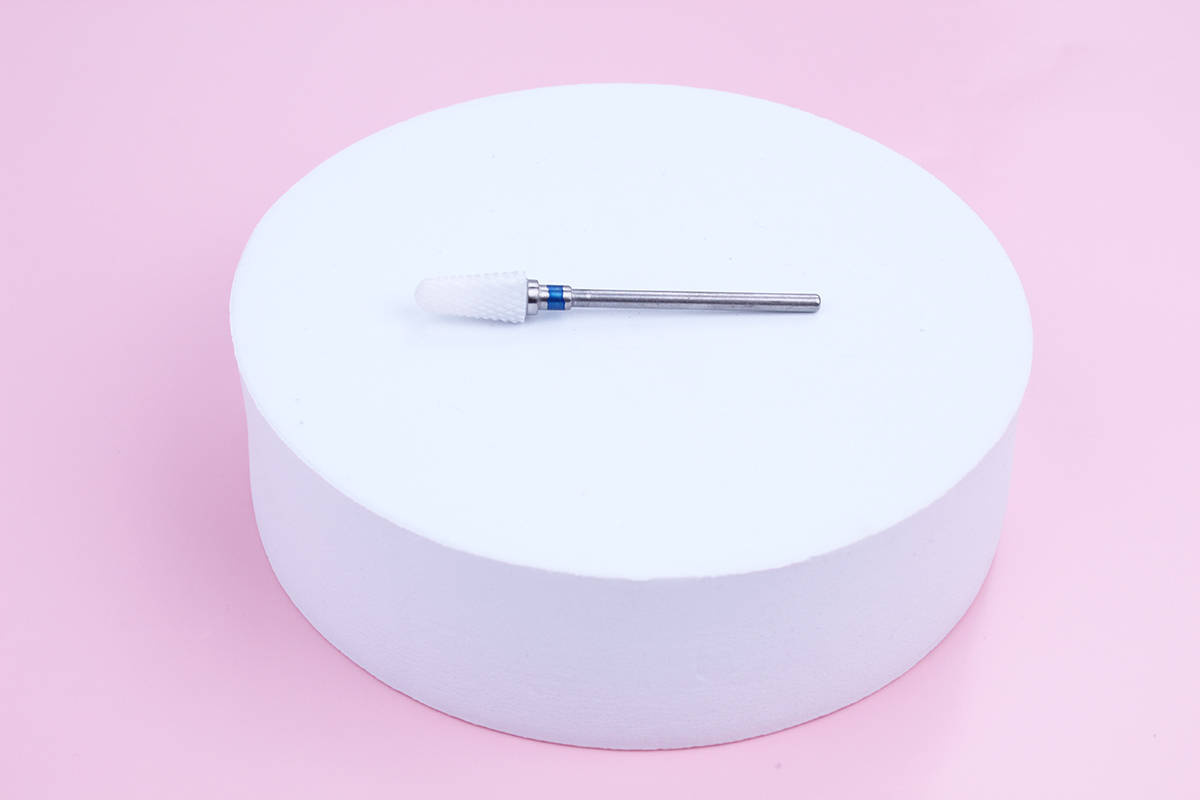 Frez ceramiczny w kształcie stożka perfekcyjnie i równocześnie delikatnie usuwa masę z całej płytki paznokcia i trudno dostępnych brzegów, nie powodując przy tym drgań.