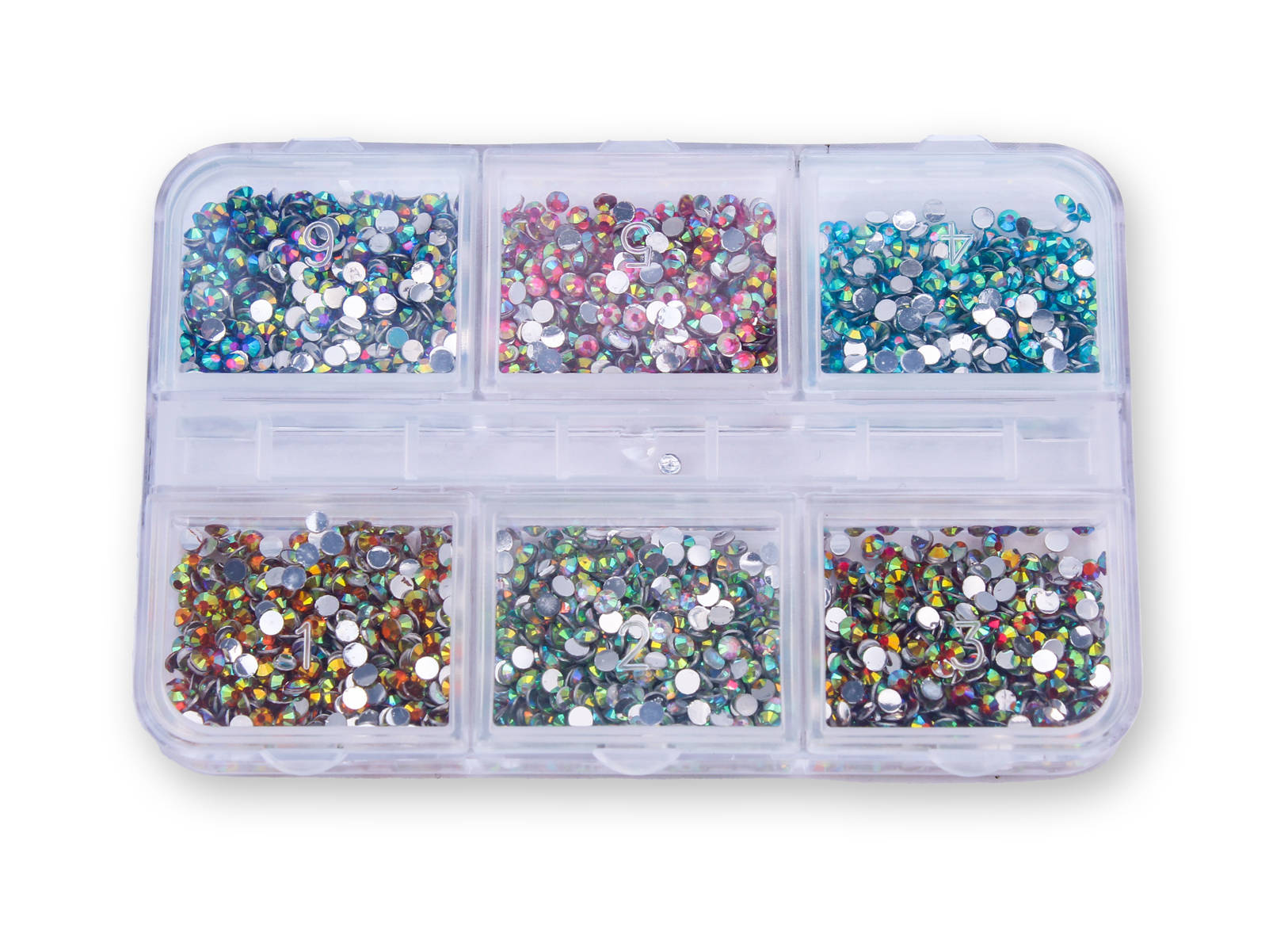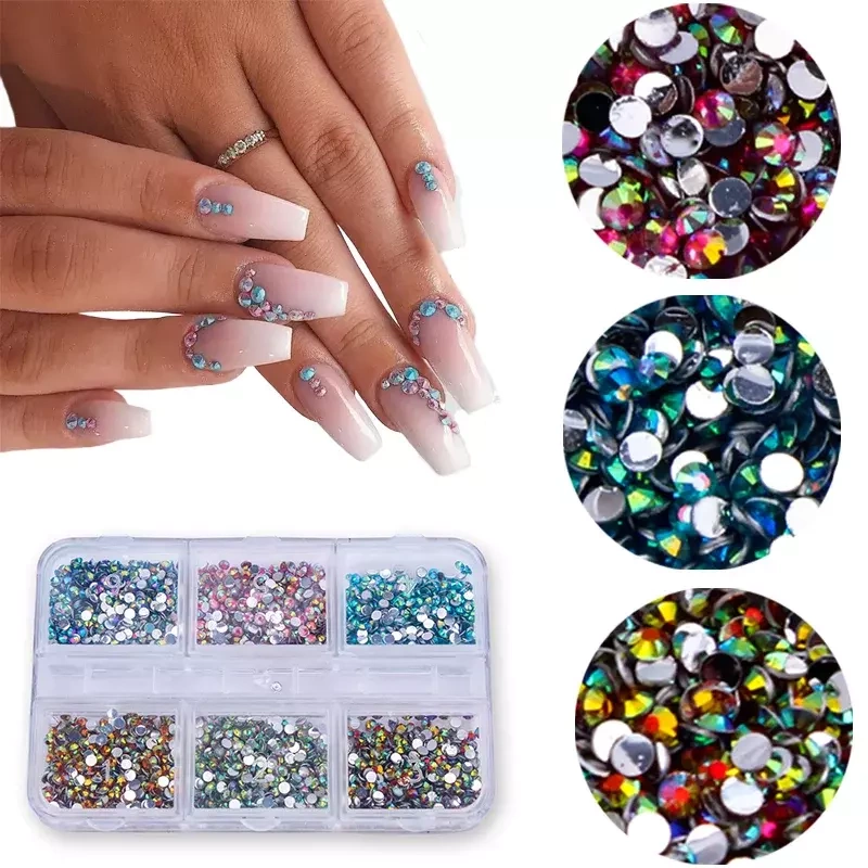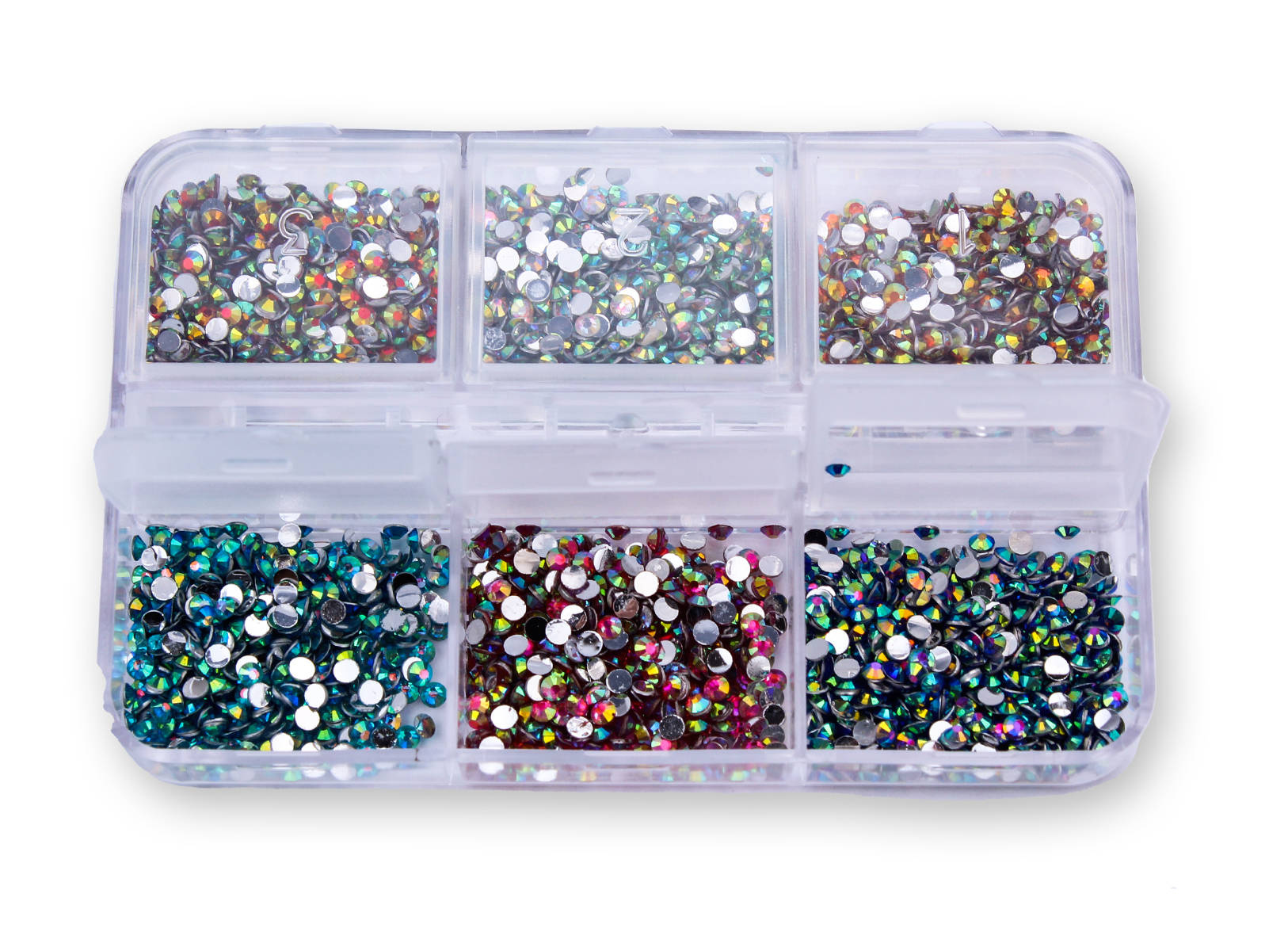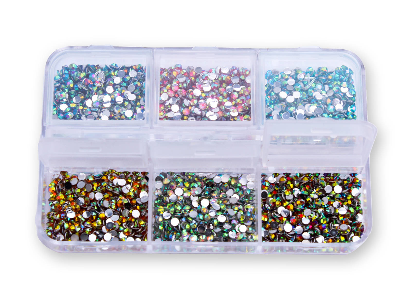 Zestaw ozdób do paznokci cyrkonie 6 kolorów- kasetka
