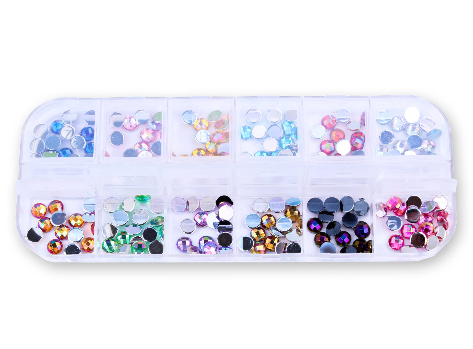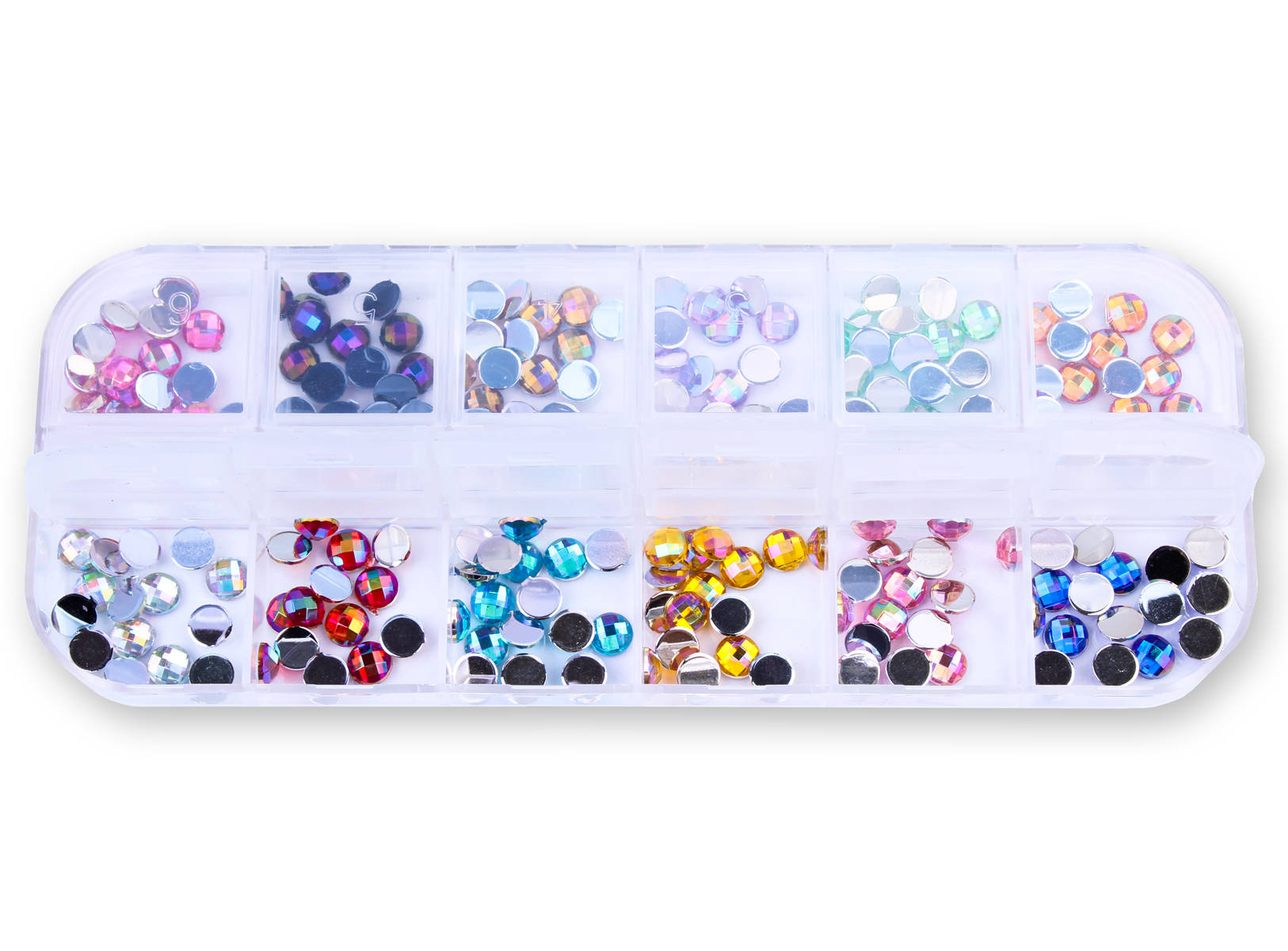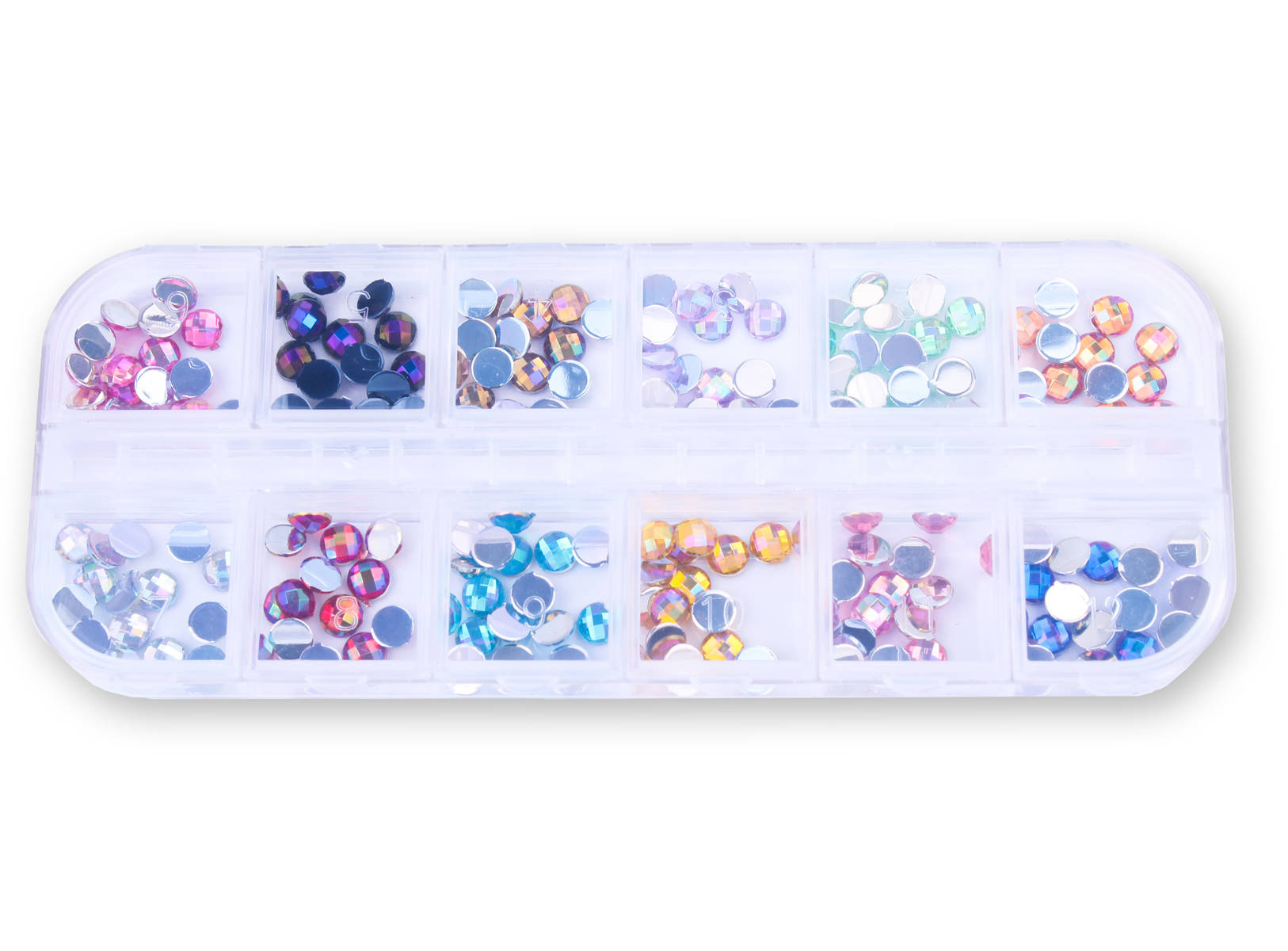Zestaw ozdób do paznokci okrągłe dżety holo 12 kolorów - kasetka