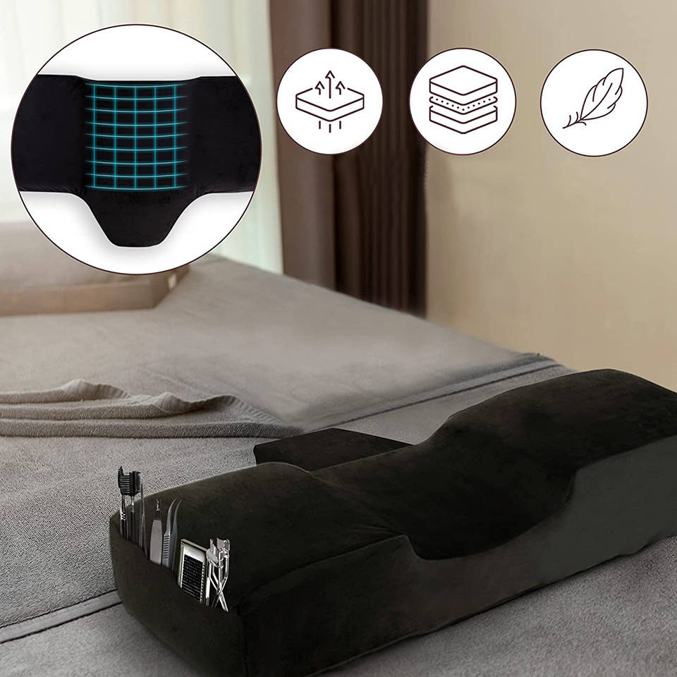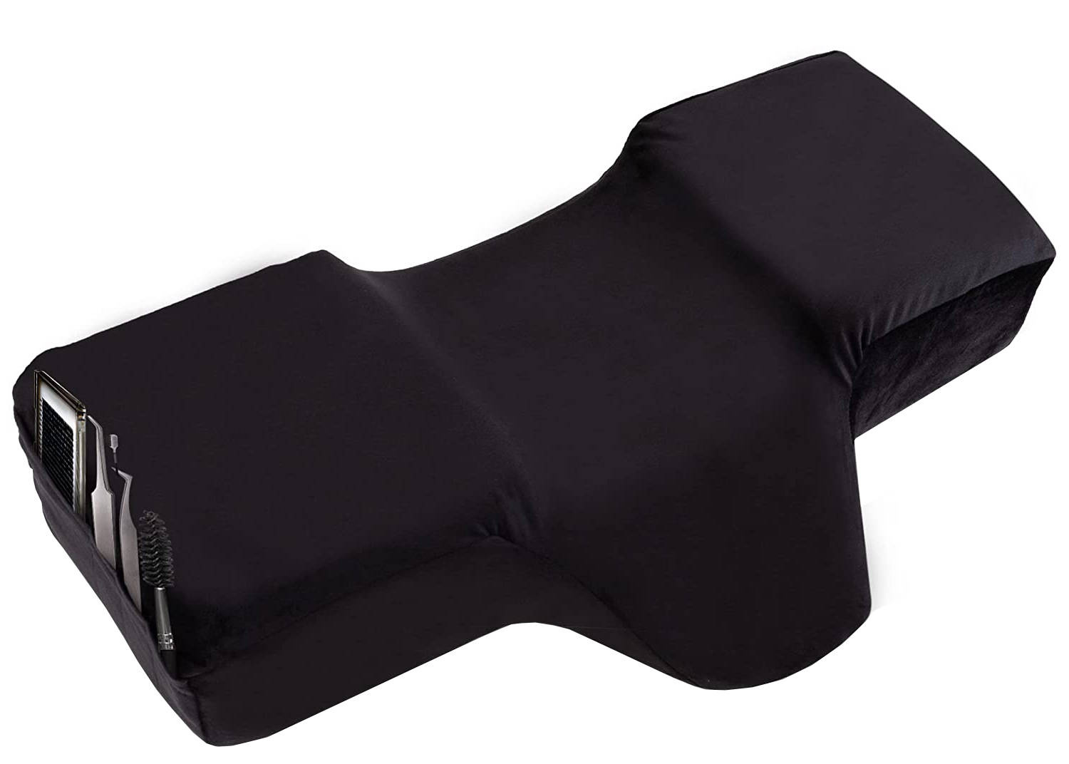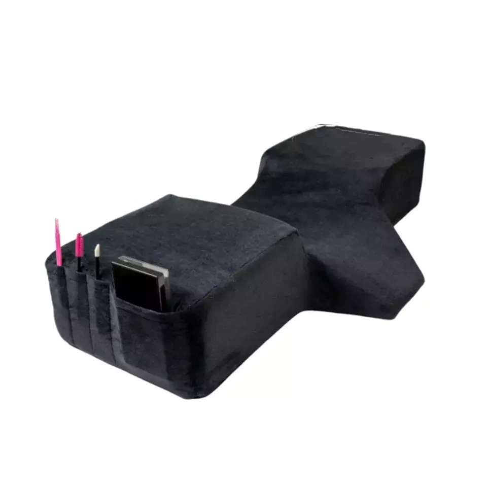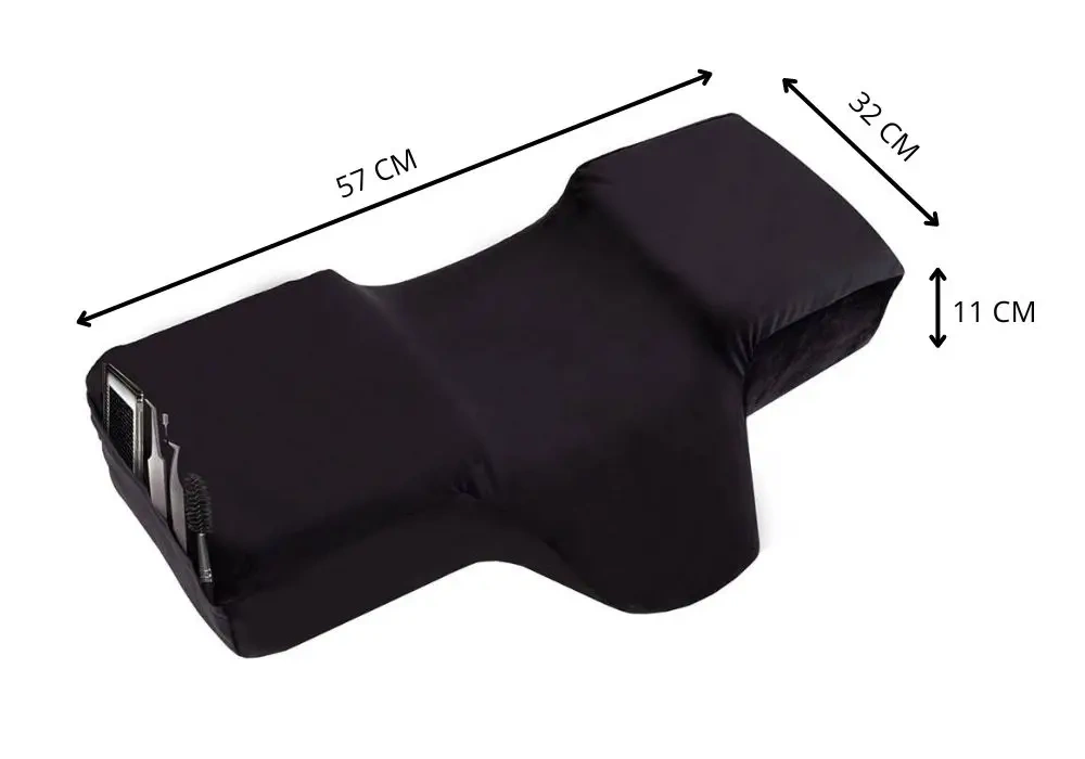 Poduszka pod głowę z kieszonkami do przechowywania niezbędnych narzędzi podczas wykonywania zabiegu przedłużania rzęs.