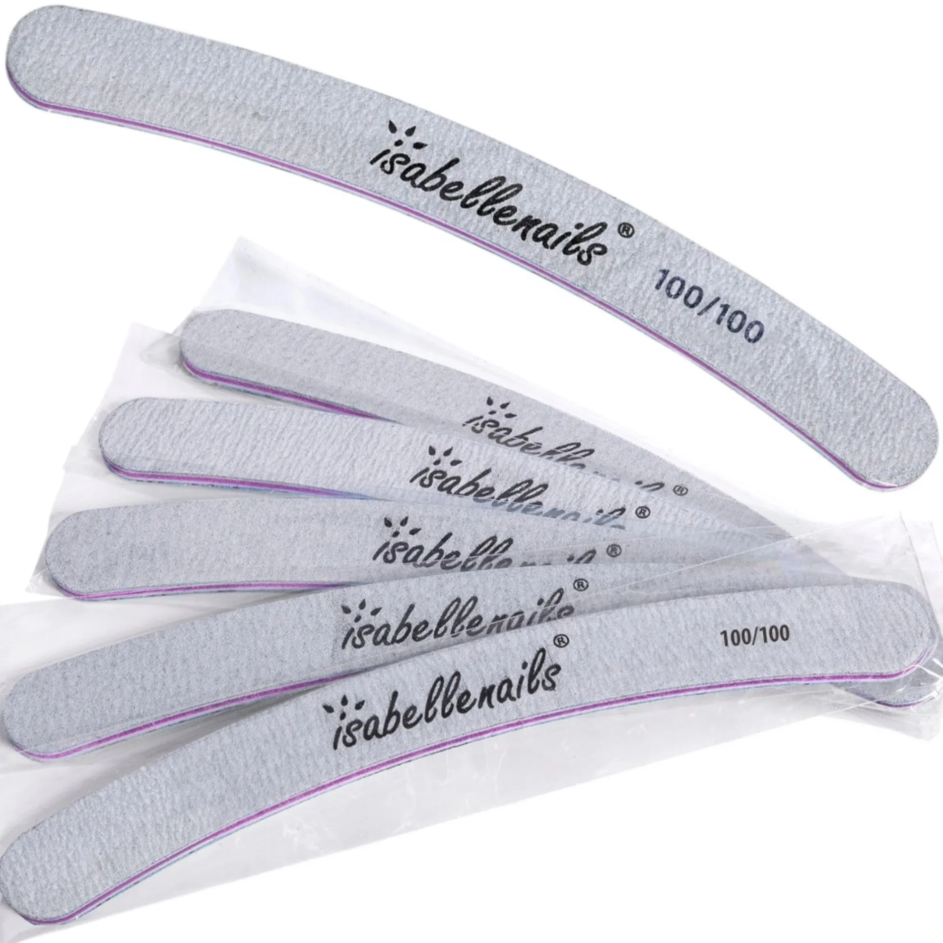 Pilnik do paznokci w kształcie banana o gradacji 100/100 do użytku profesjonalnego.