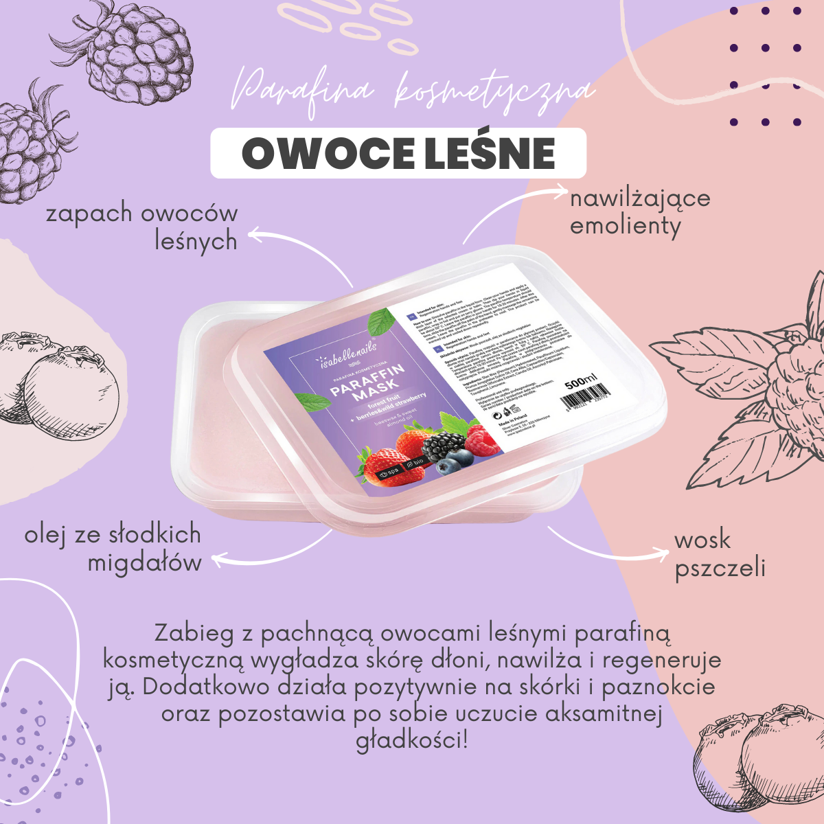 Zestaw 30x parafina kosmetyczna isabellenails owoce leśne 500 ml